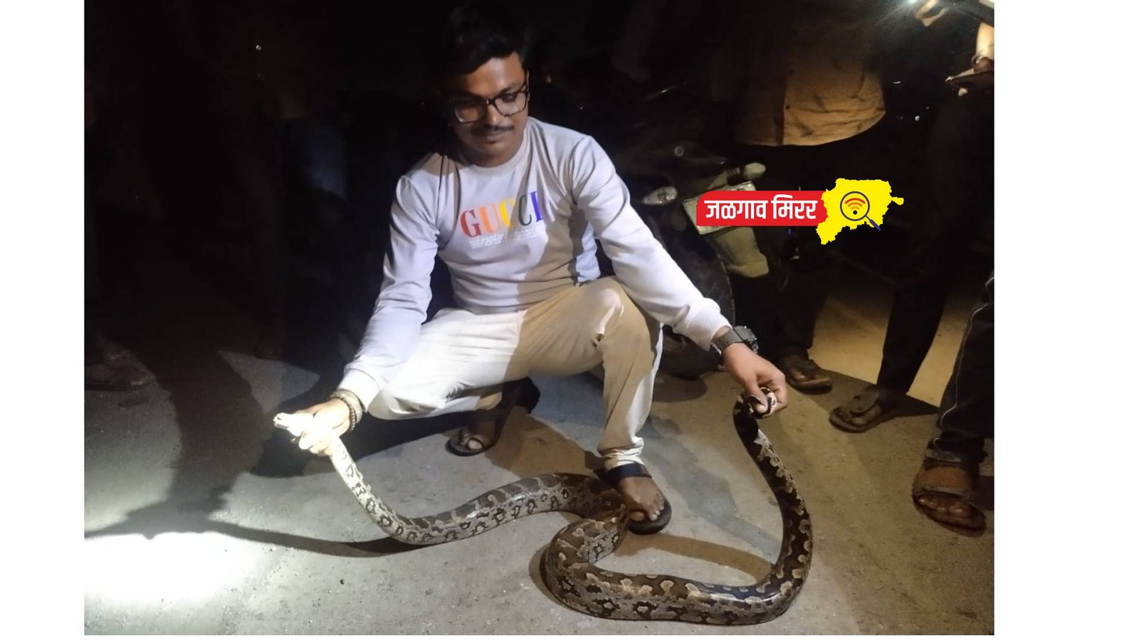 सविस्तर वृत्त असे की, शहरातील नवीन कानळदा रोडवर असलेल्या राजाराम नगर परिसरात दि. ३० जुलै रोजी रात्री ८ ते ९ वाजेच्या दरम्यान नवीन कानळदा रोडच्या बाजूला गवतामध्ये बसलेला होता. यावेळी येथून जाणाऱ्या नागरिकांना येथे दिसला असता येथील निलेश इंगळे नामक तरुणाने सर्पमित्र अमर लोखंडे यास संपर्क साधून त्यांना बोलविले असता. सर्पमित्र लोखंडे याने या साडे आठ फुटाचा व व ७ किलो वजनाचा नर जातीच्या अजगरास पकडून सर्पमित्र लोखंडे याने आडगाव ता.यावल येथील वन विभागात सुखरूप सोडल्याची माहिती लोंखडे याने बोलताना सांगितले.