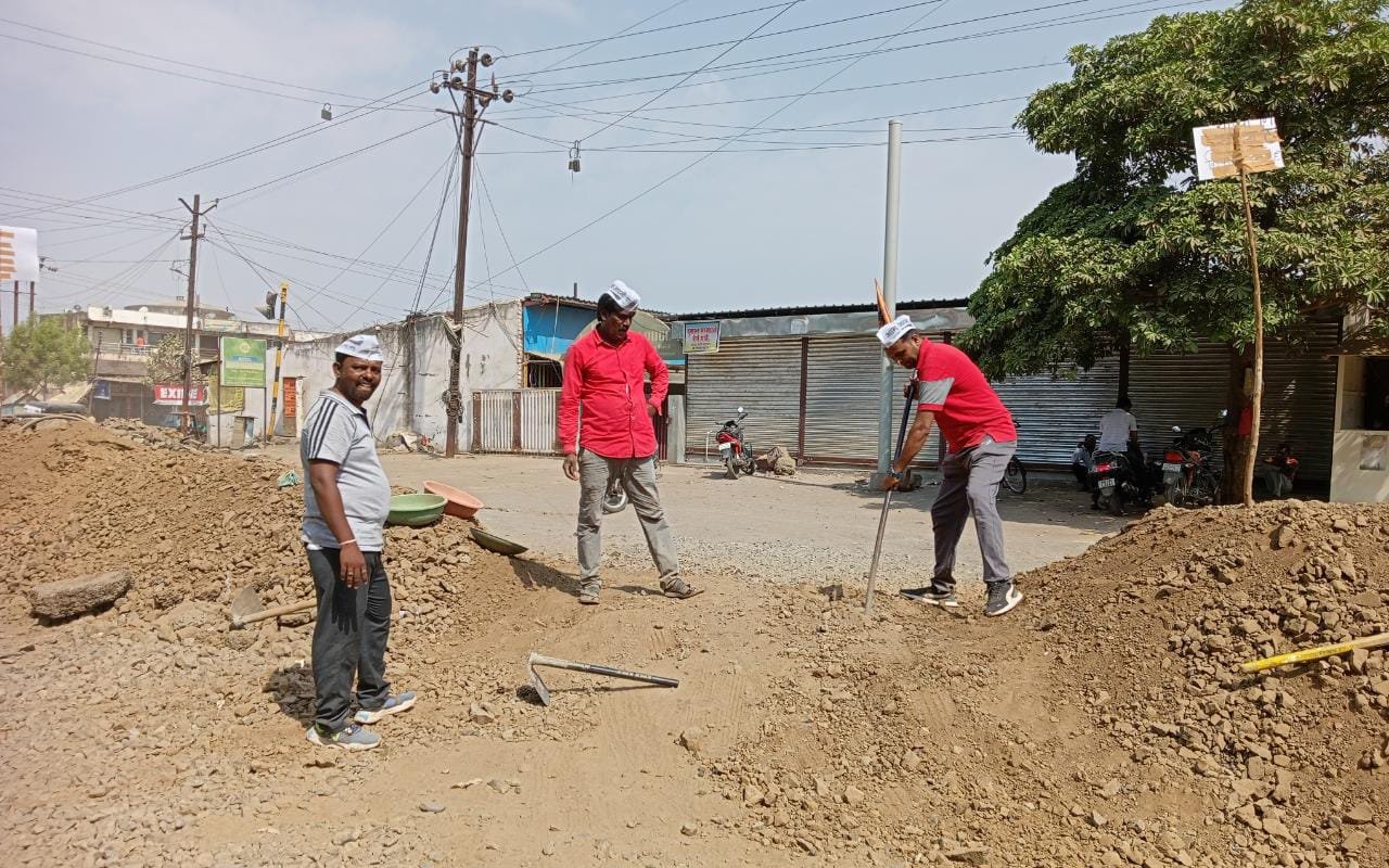 रविवार रोजी जळगाव शहर आम आदमी पार्टीच्या सर्व कार्यकर्त्यानीं व सर्व पदाधिकाऱ्यांनी श्रमदानं देऊन महानगरपालिकेच्या नाकर्ते पनाचा जाहीर निषेध केला गेला गेल्या एक महिन्या पासून एमआयडीसीजवळ राका फर्निचर रोडावर औरंगाबाद राष्ट्रीय हायवेच्या वेस्ट मटेरियल मनपा हद्दीतील रोडवर टाकून रस्ता राहादारी करिता पूर्णतः बंद केला आहे .