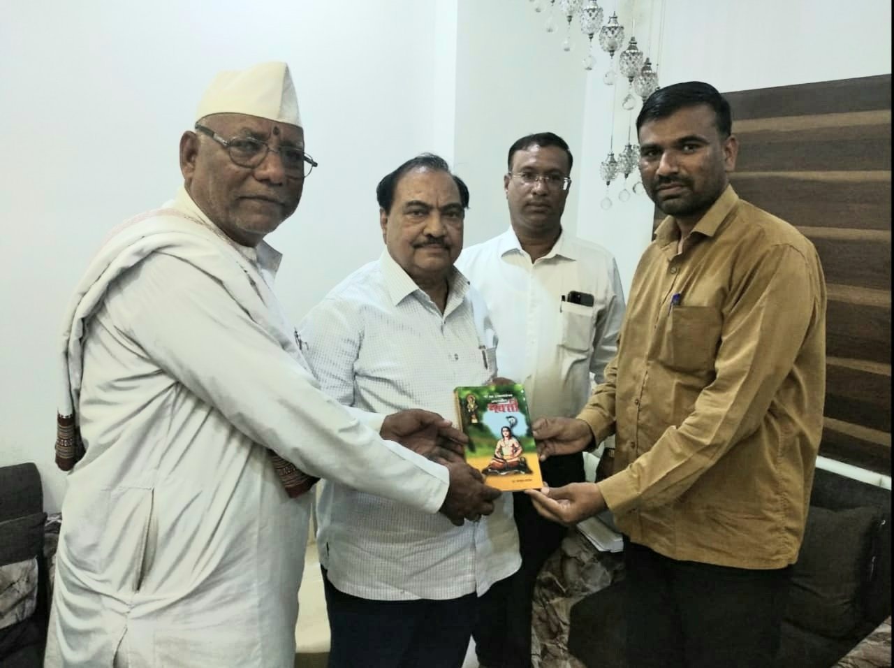 येथील डॉ. सुनील नेवे यांच्या निवासस्थानी माजी मंत्री एकनाथराव खडसे यांना डॉ.जगदीश पाटील लिखित श्री संत एकनाथांच्या अभंगातील भक्ती हा ग्रंथ भेट देण्यात आला.