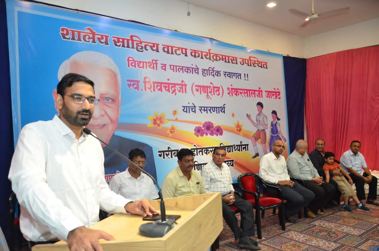 कार्यक्रमाचे प्रास्ताविक नितीन बरडे यांनी केले. “गेल्या १२ वर्षांपूर्वी स्व. गणूशेट यांनी पुढाकार घेऊन सुरू करायला लावलेला हा उपक्रम जाखेटे परिवार व इतर दानशूर मित्रांनी सुरू ठेवला आहे. शालेय साहित्य मिळालेले विद्यार्थी समाजातील शेवटच्या घटकातील आहेत. त्यांच्या आणि पालकांच्या चेहऱ्यावरील आनंद आम्हाला आनंद देतो. हे कार्य अविरत सुरू राहिल,” असे ते म्हणाले. “या उपक्रमासाठी प्रकाशशेट जाखेट, अशोकभाऊ जैन, सुनीलभाऊ मंत्री, सुरज झंवर, अशुतोष पाटील यांचेही सहकार्य असते,” असाही उल्लेख श्री. बरडे यांनी केला.