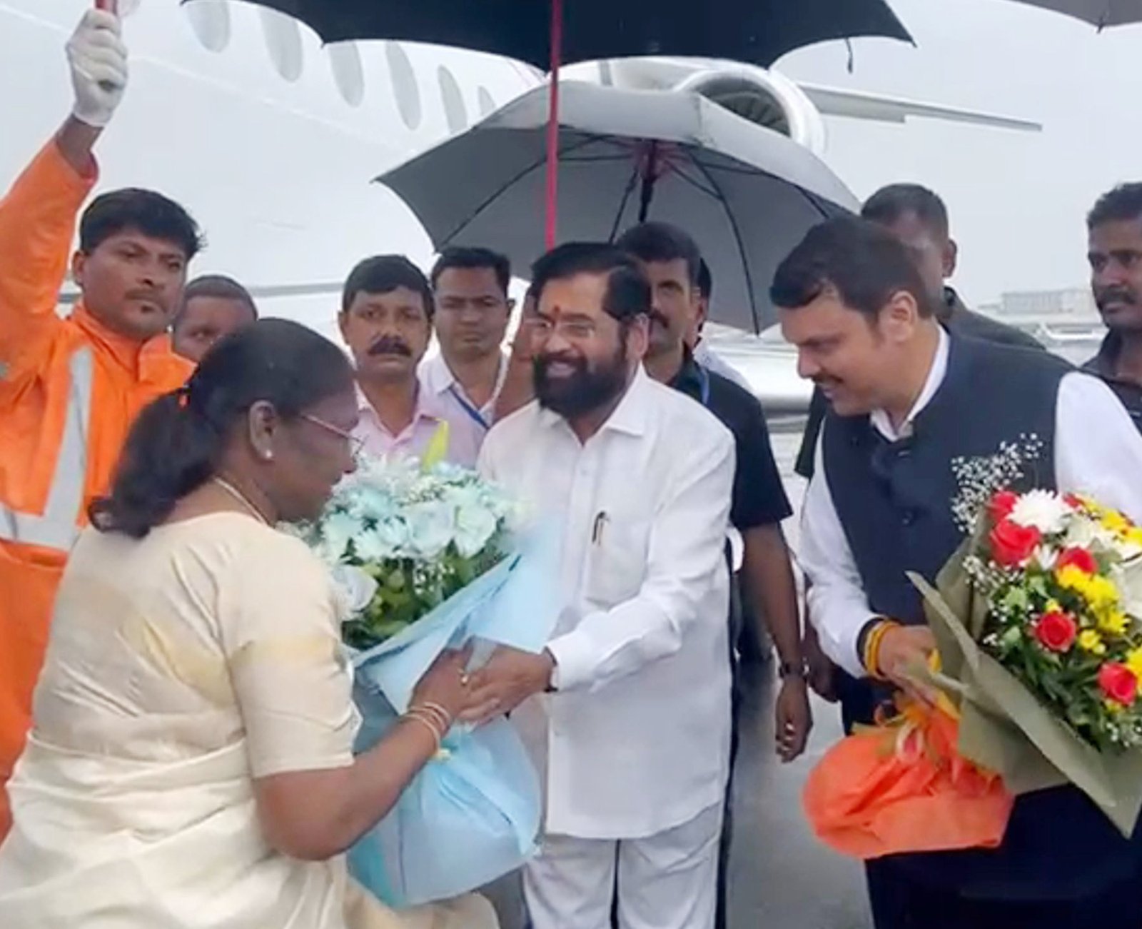 राष्ट्रीय लोकशाही आघाडीच्या राष्ट्रपतीपदाच्या उमेदवार द्रौपदी मुर्मू यांचे मुख्यमंत्री एकनाथ शिंदे आणि उपमुख्यमंत्री देवेंद्र फडणवीस यांनी छत्रपती शिवाजी महाराज आंतरराष्ट्रीय विमानतळावर स्वागत केले. राष्ट्रपतीपदाच्या निवडणुकीपूर्वी त्या एक दिवसीय मुंबई दौऱ्यावर असून, या भेटीत त्या शिवसेना, भाजप खासदार आणि आमदारांची लीला हॉटेलमध्ये भेट घेणार आहेत. आजच्या बैठकीत जवळपास 250 आमदार-खासदार उपस्थित राहण्याची शक्यता आहे. भाजप आणि शिंदे गटाच्या आमदारांसह भाजपला पाठिंबा देणाऱ्या लहान घटक पक्षदेखील या बैठकीत उपस्थित राहणार असल्याची माहिती सूत्रांनी दिली.