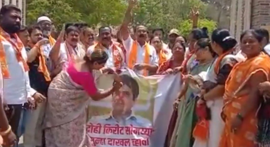 भाजपाचे माजी खासदार किरीट सोमय्या यांनी आय एन एस विक्रांत च्या नावाखाली कोट्यवधी रुपयांची रक्कम जमा करून स्वतः खर्च केल्या प्रकरणी त्यांच्यावर देशद्रोहाचा गुन्हा दाखल करावा या मागणी साठी शिवसेना जळगाव महानगर तर्फे जिल्हाधिकारी कार्यालय समोर निदर्शने करण्यात येऊन किरीट सोमय्या यांच्या प्रतिमेला जोडेमार आंदोलन करण्यात आले.