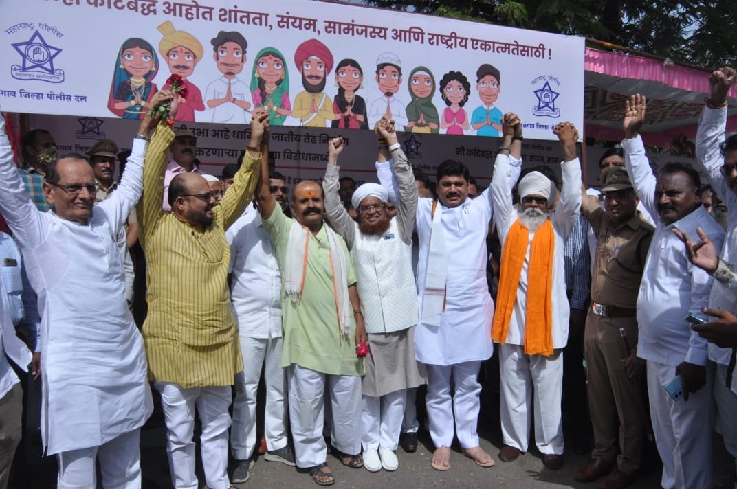 कार्यक्रमांस जिल्हाधिकारी अभिजित राऊत, जिल्हा पोलीस अधीक्षक डॉ. प्रविण मुंढे, जि.प.मुख्य कार्यकारी अधिकारी डॉ पंकज आशिया, महापौर जयश्री महाजन, मनपा आयुक्त डॉ. गायकवाड आदी उपस्थित होते. यावेळी मंत्री मुंडे यांनी उपस्थित ना. गुलाबराव पाटील, जिल्हा पोलीस अधीक्षक डॉ. प्रविण मुंढे, मुफ्ती हारून नदवी, रवींद्र पाटील, अशोक लाडवंजारी यांचे हातात हात घेऊन सर्व धर्मीय एकतेचा संदेश यावेळी दिला.यावेळी पोलीस अधीक्षकांचे परिवारसुद्धा स्वाक्षरी मोहिमेत सहभागी झाले होते. तसेच या स्वाक्षरी मोहिमेत शहरातील नागरिकांनीही सहभागी होण्याचे आवाहन जिल्हा पोलीस अधीक्षक डॉ. प्रविण मुंढे यांनी केले आहे.