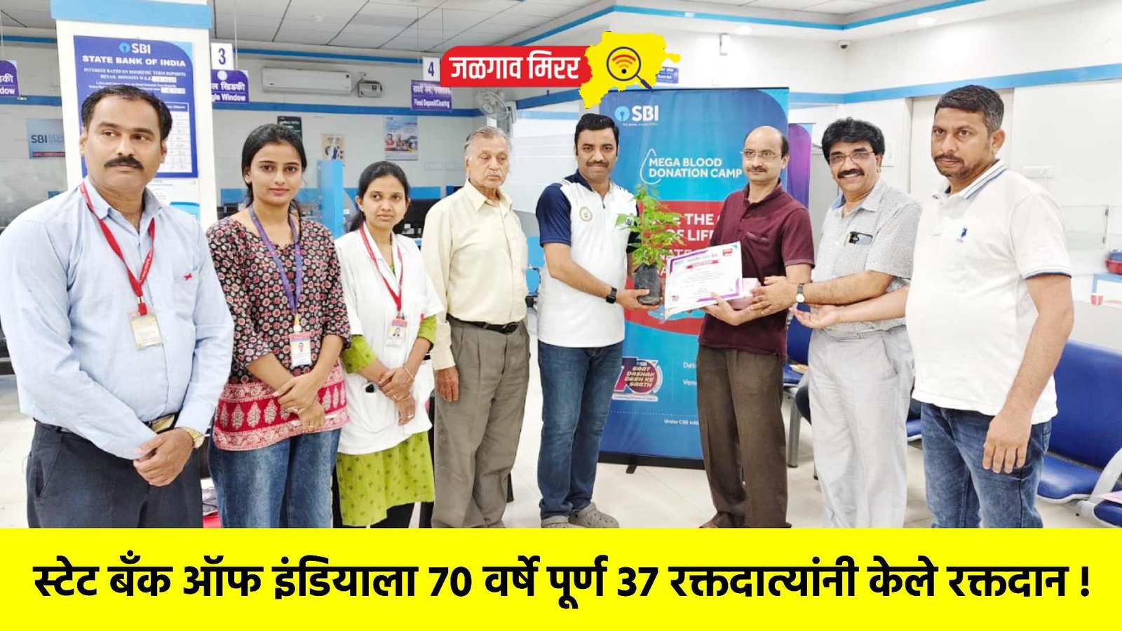 स्टेट बँक ऑफ इंडियाला 70 वर्षे पूर्ण 37 रक्तदात्यांनी केले रक्तदान !