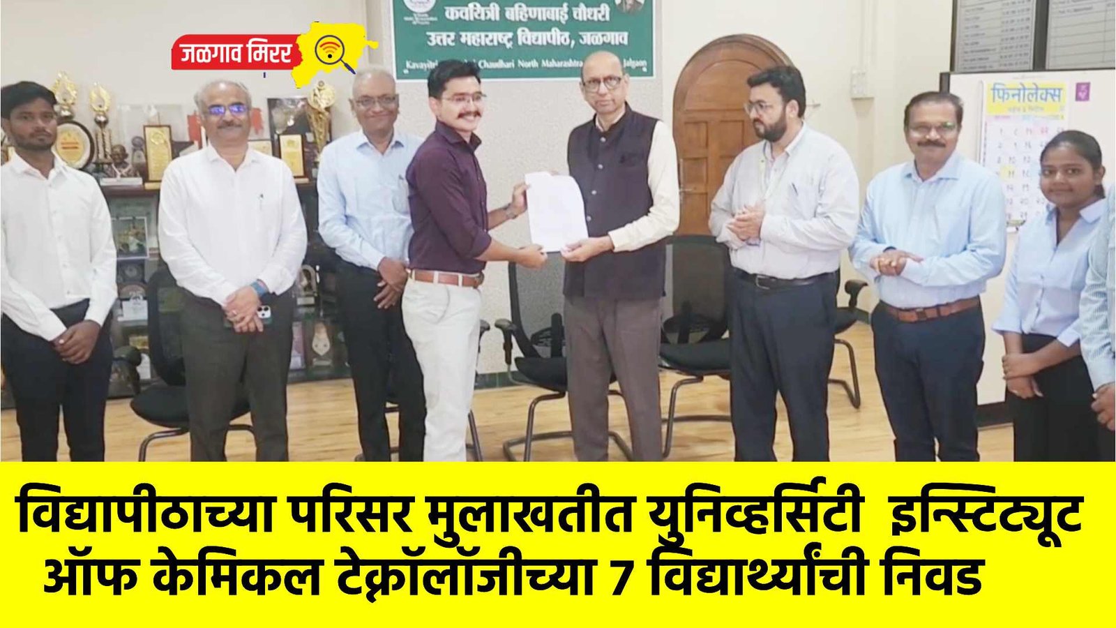कवयित्री बहिणाबाई चौधरी उत्तर महाराष्ट्र विद्यापीठाच्या युनिव्हर्सिटी इन्स्टिट्यूट ऑफ केमिकल टेक्नॉलॉजी संस्थेतील सात विद्यार्थ्यांची परिसर मुलाखतीमध्ये निवड झाली असून कुलगुरू प्रा व्ही. एल. माहेश्वरी यांच्या हस्ते त्यांना आज नियुक्तीपत्रे देण्यात आली.