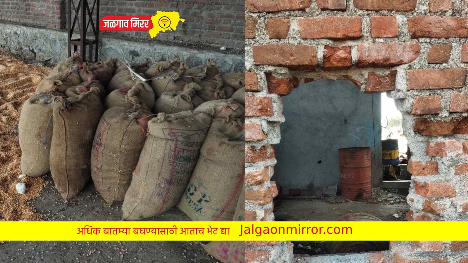 या संदर्भात अधिक असे की, शहरातील चोपडा रोडवर पवन महाले यांची कमल जिनिंग आहे. अज्ञात चोरट्यांनी शनिवार रात्री जिनिंगची बाजूची भिंत फोडत आत प्रवेश केला. त्यानंतर फोडलेल्या भिंतीच्या बोगद्यातून साधारण ३५ ते ४० क्विंटल कपाशी आणि तेवढाच मका चोरून नेला. कपाशीला ८ हजार रुपये भाव असल्यामुळे तिची किंमत साधारण चार लाखांच्या घरात आहे. तर मका ५० हजार रुपये असा साधारण साडेचार लाखांचा ऐवज चोरट्यांनी लंपास केला. घटनास्थळी चार चाकी वाहनाच्या चाकांचे निशाण दिसत आहेत. त्यामुळे चोरट्यांनी मका आणि कपाशी चार चाकीमधूनचे नेल्याचे स्पष्ट आहे.