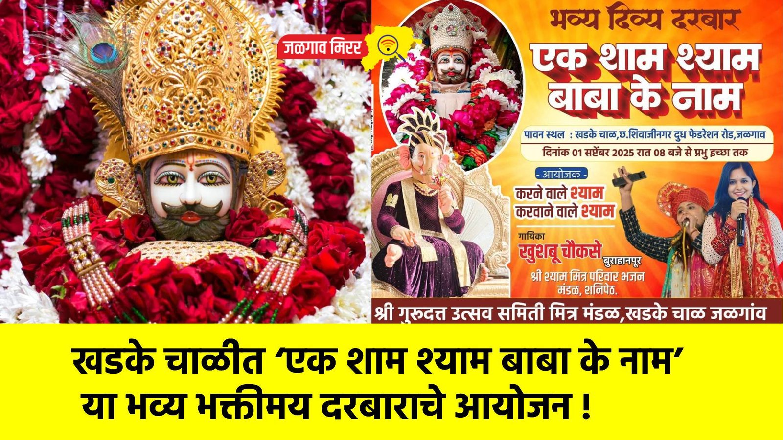 शहरातील दुध फेडरेशन रोड परिसरातील खडके चाळ येथे श्री गुरुदत्त उत्सव समिती मित्र मंडळ यांच्यावतीने सोमवार, दिनांक १ सप्टेंबर २०२५ रोजी रात्री ८ वाजता “एक शाम श्याम बाबा के नाम” हा भक्तिरसात न्हालेला कार्यक्रम आयोजित करण्यात आला आहे. हा कार्यक्रम रात्री उशिरापर्यंत, म्हणजेच प्रभू इच्छा होईपर्यंत चालणार आहे.