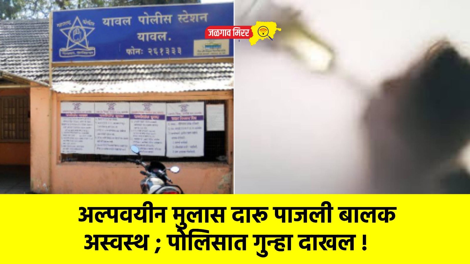 यावल तालुक्यातील साकळी येथील डॉ. आंबेडकर नगरातील रहिवाशी एका ११ वर्षीय बालकाला शिरसाड येथील वाळू वाहतूक करणाऱ्या ट्रॅक्टर चालकांनी आपल्या सोबत बसवून नेले व त्याला दारू पाजली. त्यामुळे हा बालक अस्वस्थ झाल्याने ट्रॅक्टर चालकांनी त्याला सोडून पळ काढला. बालकाला नागरिकांनी त्याच्या घरी पोहोचवले दरम्यान हा बालक बेशुद्ध पडल्यामुळे कुटुं‌बाकडून त्याला तातडीने यावल ग्रामीण रूग्णालयात दाखल केले. याबाबत बालकाच्या पालकांनी यावल पोलिसात तक्रार दिली आहे.