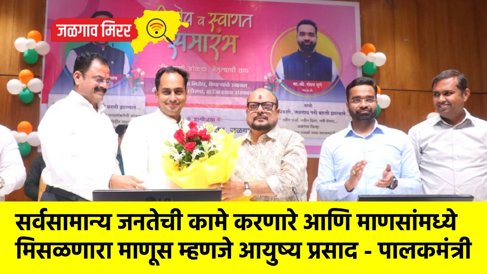 जिल्हा वार्षिक योजनेच्या माध्यमातून पोलिसांना नवीन चार चाकी वाहन, बीटवरील पोलिसांना मोटरसायकल उपलब्ध करून देण्याचे काम पालकमंत्री म्हणून मी आणि सर्व आमदार जिल्हाधिकारी,जिल्हा पोलीस अधीक्षक यांनी केले आहे. जळगाव जिल्ह्यात यापूर्वी काम करून जे जे जिल्हाधिकारी गेले आहेत त्यातील बरेच अधिकारी पुढे राज्याचे मुख्य सचिव झाले असल्याचा उल्लेख करून पालकमंत्री पुढे म्हणाले, माझे मन सांगते आहे की, आयुष प्रसाद हे एक दिवस महाराष्ट्राचे मुख्य सचिव होणार, त्यांची कार्यशैली व त्यांनी घेतलेली मेहनत आणि सर्व राजकीय पक्षांशी चांगले संबंध त्यांनी जपले असून, काम करताना त्यांनी मनात कधीच अहंकार बाळगला नाही, सर्वांची कामे त्यांनी केलीत.