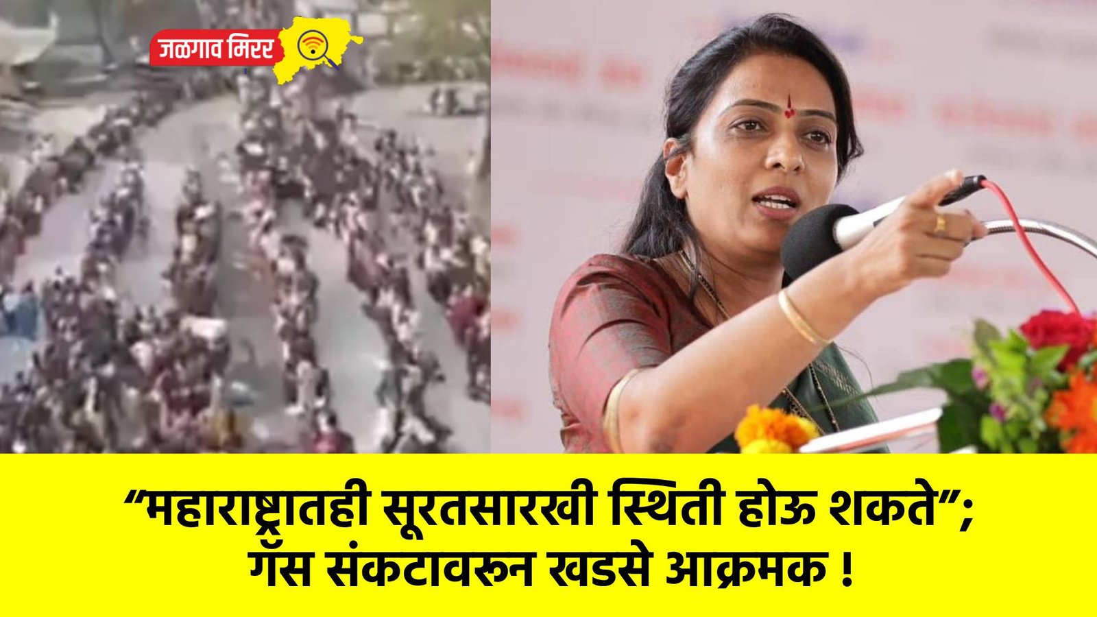 गुजरातमधील सूरत शहरात निर्माण झालेल्या गॅस टंचाईच्या गंभीर परिस्थितीचे पडसाद आता देशभर उमटू लागले असून महाराष्ट्रातही चिंतेचे वातावरण निर्माण झाले आहे. राष्ट्रवादी काँग्रेस (शरदचंद्र पवार गट) पक्षाच्या महिला प्रदेशाध्यक्षा रोहिणी खडसे यांनी या पार्श्वभूमीवर राज्य सरकारला थेट इशारा देत तातडीने उपाययोजना करण्याची मागणी केली आहे.