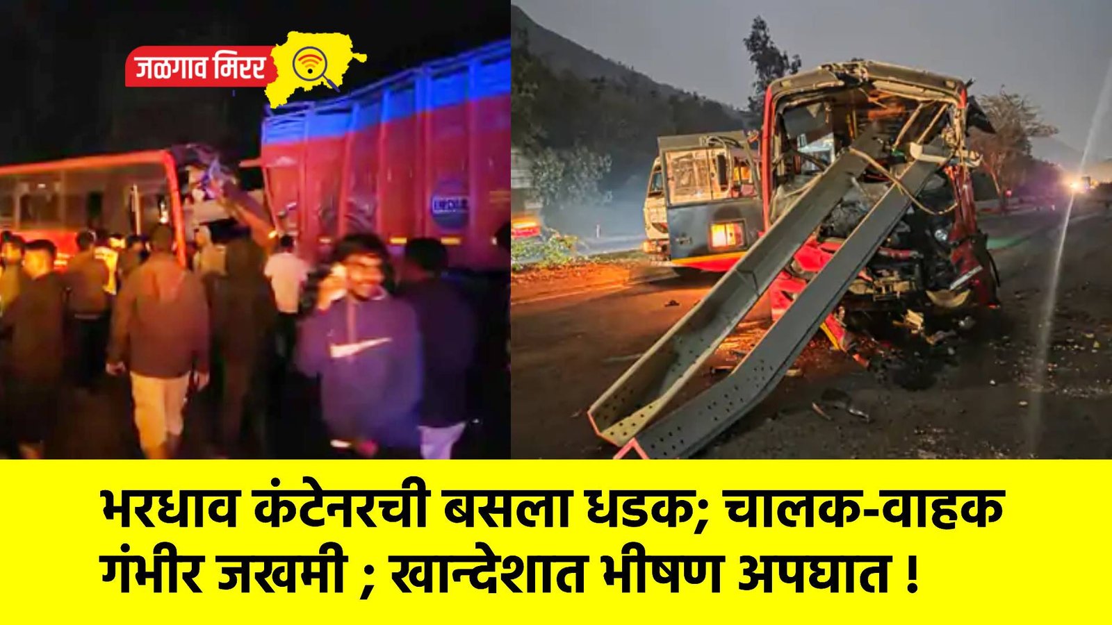 भरधाव कंटेनरची बसला धडक; चालक-वाहक गंभीर जखमी ; खान्देशात भीषण अपघात !
