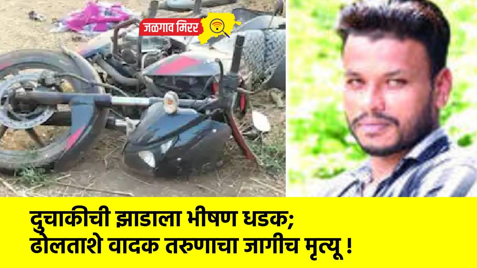 दुचाकीची झाडाला भीषण धडक; ढोलताशे वादक तरुणाचा जागीच मृत्यू !