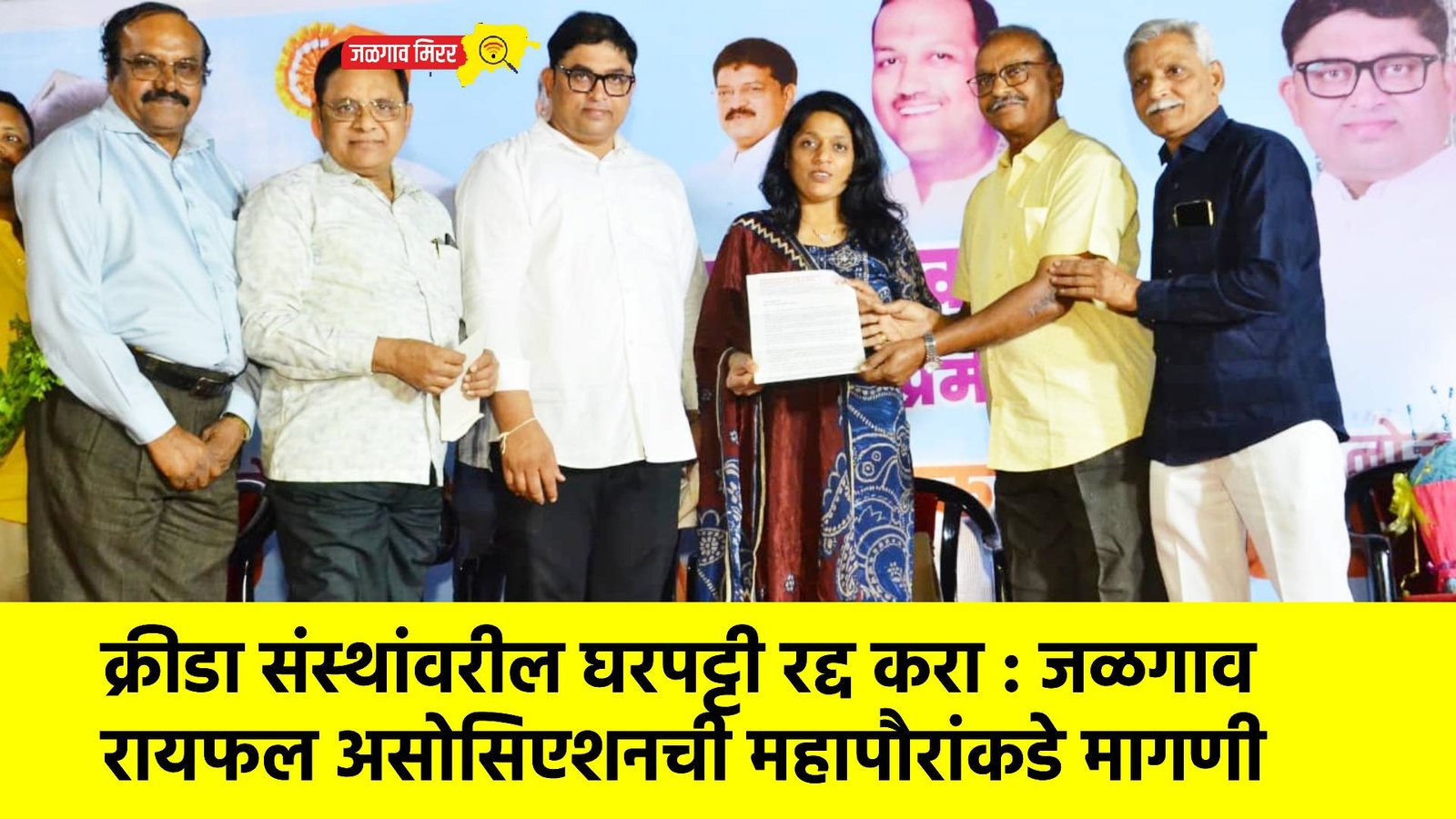जळगाव शहरातील नोंदणीकृत क्रीडा संस्थांवर लावण्यात येणारी घरपट्टी रद्द करण्यात यावी, अशी मागणी जळगाव जिल्हा रायफल असोसिएशनच्या वतीने शहराच्या महापौरांकडे करण्यात आली आहे. महापौरपदी निवड झाल्याबद्दल अभिनंदन करत असोसिएशनच्या पदाधिकाऱ्यांनी यासंदर्भात निवेदन सादर केले.