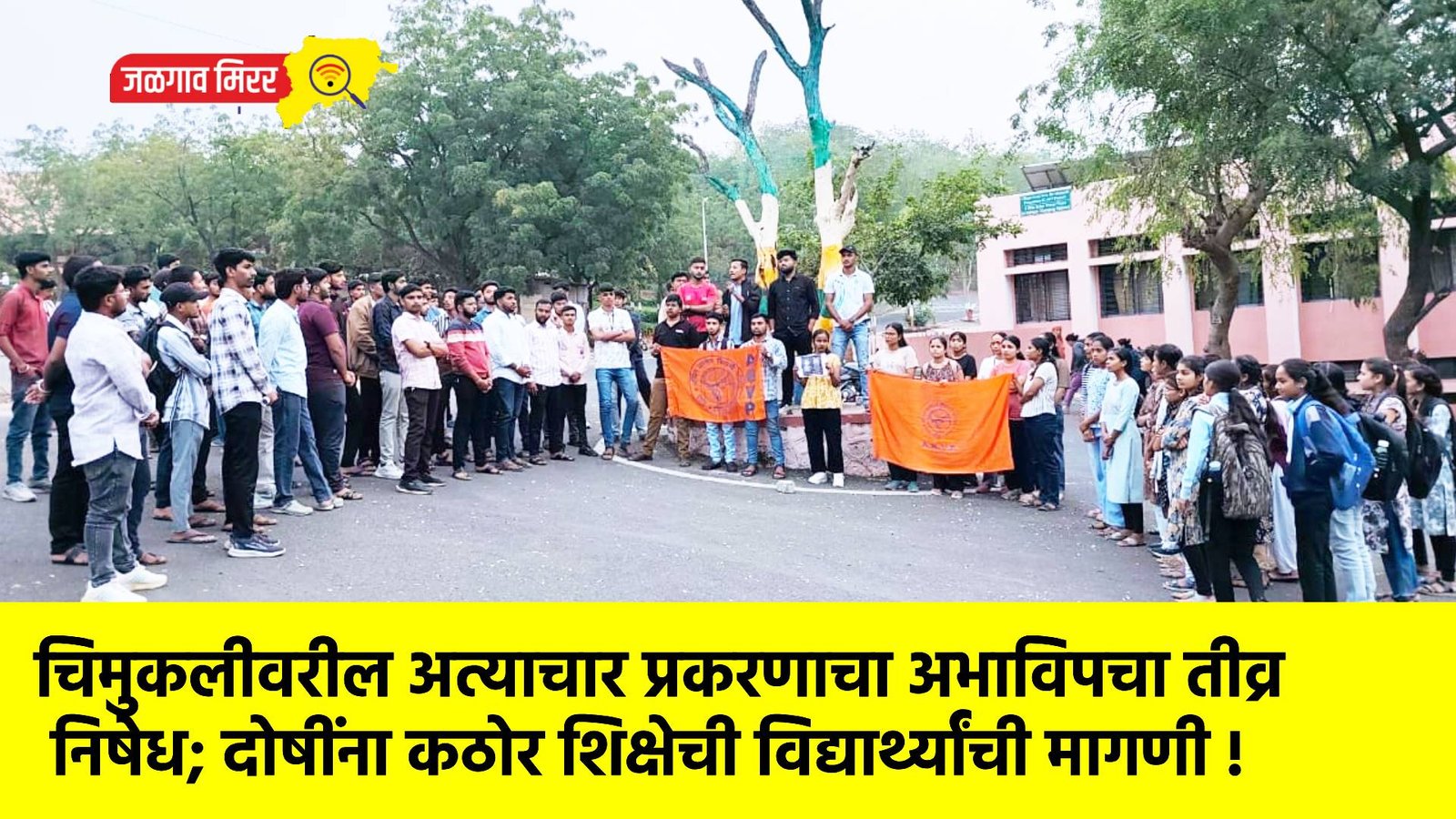मालेगाव येथे चिमुकलीवर झालेल्या अमानुष अत्याचारप्रकरणाने संतापाची लाट उसळली असून, या भीषण घटनेचा अखिल भारतीय विद्यार्थी परिषदेने (अभाविप) कवयित्री बहिणाबाई चौधरी उत्तर महाराष्ट्र विद्यापीठ, जळगाव येथे जोरदार निषेध नोंदवला. अभाविपच्या विद्यार्थी कार्यकर्त्यांसह विद्यापीठातील मोठ्या संख्येने विद्यार्थ्यांनी एकत्र येत या घृणास्पद कृत्याचा कठोर शब्दांत निषेध नोंदवत समाजात जागृतीचा संदेश दिला.