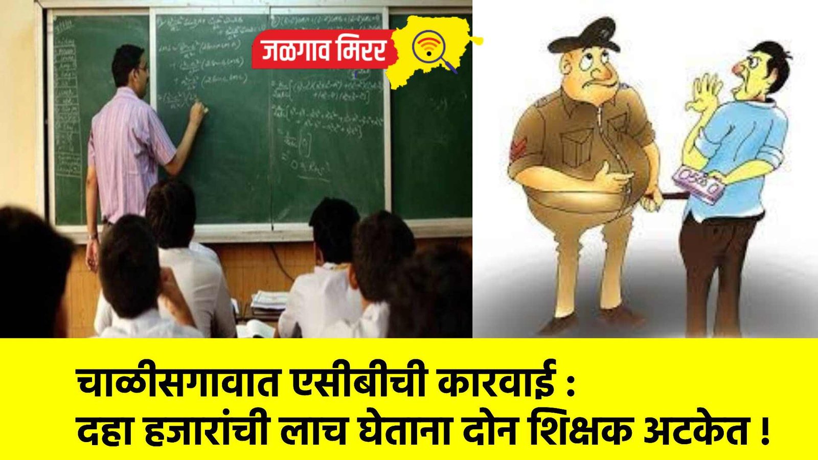 गुलाब विरभान साळुंखे व उल्हास भास्करराव बागूल अशी लाचखोर शिक्षकांची नावे आहेत. तकारदार हे मेहुणबारे येथील रहिवासी असून त्यांचा मुलगा गिरणा विद्या प्रसारक मंडळाच्या मेहुणबारे माध्यमिक विद्यालयातूद दहावी उत्तीर्ण झाला आहे. त्यास याच संस्थेच्या मेहुणबारे उच्च माध्यमिक विद्यालयात अकरावी सायन्स या वर्गात प्रवेश घ्यावयाचा होता. याबाबत चौकशी करण्यासाठी तक्रारदार व त्यांच्या मुलाने २७ मे रोजी या शाळेत जावून तेथे उपशिक्षक गुलाब साळुंखे व लिपिक पंजाबराव देशमुख यांची भेट घेतली. त्यांनी तक्रारदारांना त्यांच्या मुलाच्या प्रवेशा करीता २० हजार रुपये द्यावे लागतील. त्यातील १० हजार रुपये ऑनलाईल अर्ज केल्यावर व उर्वरित १० हजार रुपये शाळेत प्रवेश घेतांना द्यावे लागतील. त्याशिवाय शाळेत प्रवेश होणार नाही, असे सांगितले.