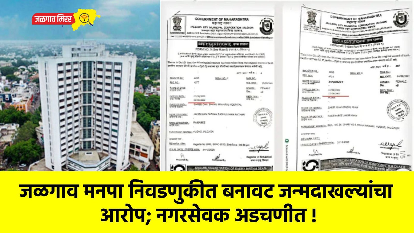 जळगाव महापालिका निवडणुकीत लाभ मिळवण्यासाठी तसेच शासकीय कामात सोयीसाठी बनावट जन्मदाखले सादर केल्याचा खळबळजनक आरोप समोर आला आहे. नगरसेवक जाकीर खान रसूल खान यांच्यावर बनावट कागदपत्रे तयार करून प्रशासनाची दिशाभूल केल्याचा आरोप माजी उपमहापौर तथा प्रतिस्पर्धी उमेदवार कुलभूषण पाटील यांनी केला आहे. गुरुवारी त्यांनी जळगाव महानगरपालिका आयुक्त तसेच शहर पोलिस ठाण्यात लेखी तक्रार दाखल केली.