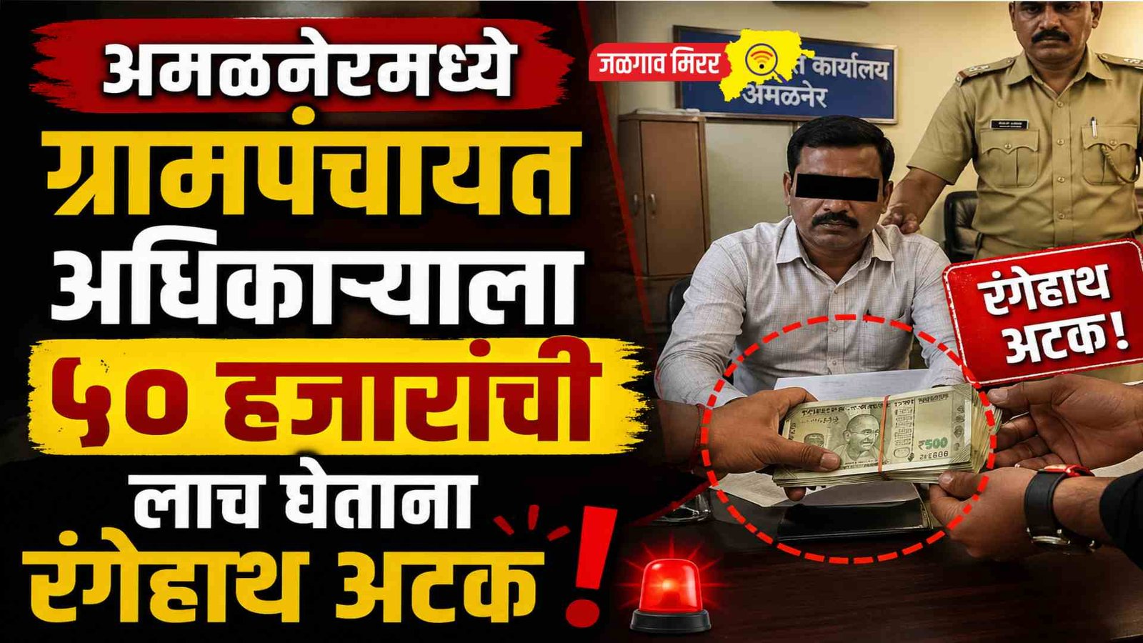 ही कारवाई पोलीस उपअधीक्षक श्री. योगेश ठाकूर यांच्या मार्गदर्शनाखाली, पोलीस निरीक्षक हेमंत नागरे, श्रीमती स्मिता नवघरे तर सापळा पथक पोउपनिरी/दिनेशसिंग पाटील, पोउपनिरी/सुरेश पाटील पोहेकॉ/बाळु मराठे, पोहेकॉ/किशोर महाजन, पोहेकॉ/सुनिल वानखेडे, पोकों/भुषण पाटील, पोकॉ/मनोज पाटील, पोकॉ/प्रणेश ठाकुर, पोकॉ/अमोल सुर्यवंशी, पोकॉ/सचिन चाटे यांनी केली. या घटनेमुळे ग्रामपंचायत स्तरावरील कामांमध्ये होत असलेल्या भ्रष्टाचारावर पुन्हा एकदा प्रश्नचिन्ह उपस्थित झाले असून, नागरिकांकडून कठोर कारवाईची मागणी होत आहे.