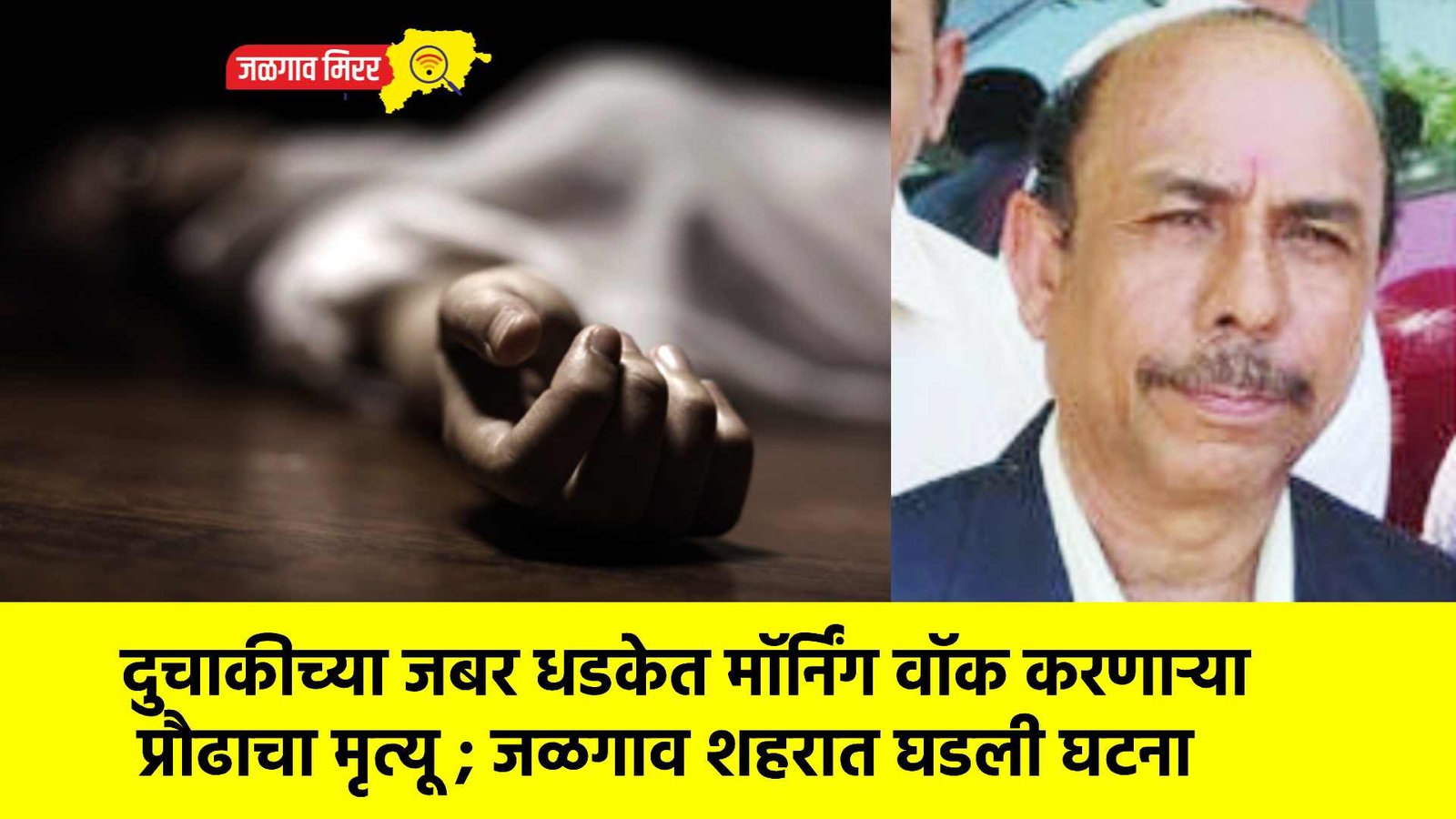 सविस्तर वृत्त असे कि, शहरातील नागेश्वर कॉलनीत राहणारे सतिष सुलक्षणे हे डीटीपी ऑपरेटर आहे. सोमवार दि. १६ रोजी सकाळी ७ वाजेच्या सुमारास मॉर्निंग वॉक करण्यासाठी गेले होते. मायादेवी मंदिराजवळ आले असताना एका दुचाकीस्वाराने त्यांना जबर धडक दिली. यात त्यांच्या डोक्याला जबर मार लागला. त्यांच्यावर खासगी रुग्णालयात उपचार सुरू असताना बुधवारी त्यांचा मृत्यू झाला. मयताच्या पश्चात पत्नी, एक मुलगा, दोन विवाहित मुली असा परिवार आहे. ते गौरांग सुलक्षणे यांचे वडील होत.