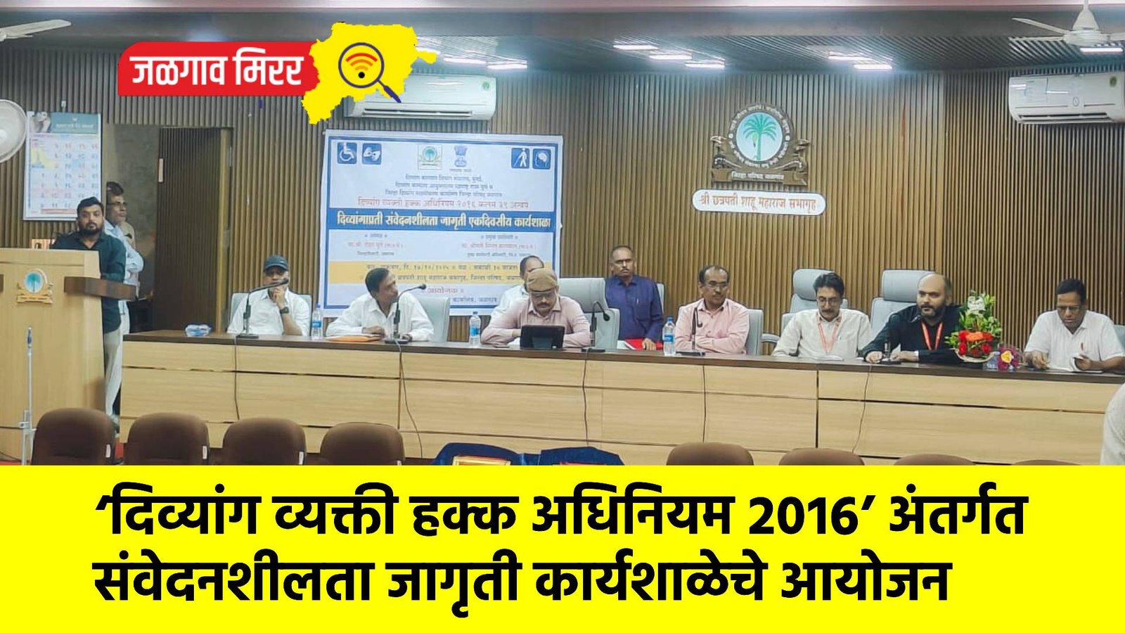 महाराष्ट्र शासनाच्या दिव्यांग कल्याण विभाग, मंत्रालय मुंबई, तसेच दिव्यांग कल्याण आयुक्तालय, महाराष्ट्र राज्य पुणे व जिल्हा परिषद, जळगाव यांच्या संयुक्त विद्यमाने “दिव्यांग व्यक्ती हक्क अधिनियम २०१६” च्या कलम ३९ अन्वये दिव्यांगांसाठी संवेदनशीलता जागृती या विषयावर एकदिवसीय कार्यशाळेचे आयोजन आज छत्रपती शाहू महाराज सभागृह, जिल्हा परिषद जळगाव येथे करण्यात आले.