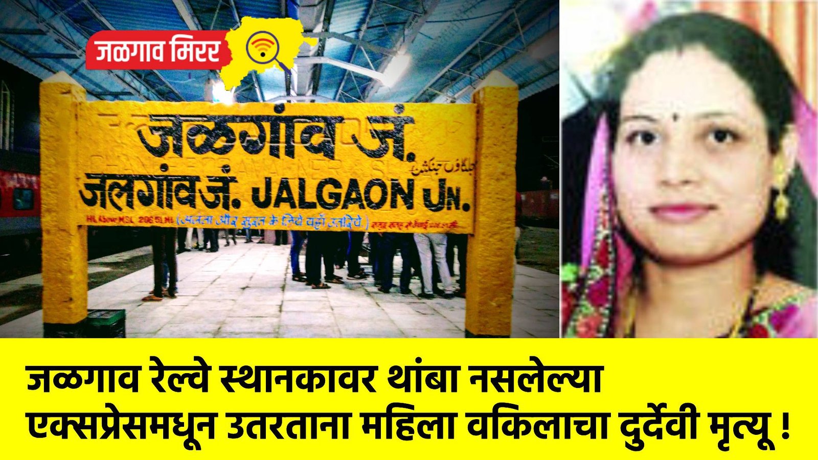 जळगाव रेल्वे स्थानकावर थांबा नसलेली मंगला एक्सप्रेस हळू झाल्याने रेल्वेतून उतरतांना अॅड. वर्षा साहेबराव गायकवाड या डोक्यावर पडल्या. गंभीर दुखापत झाल्यामुळे त्यांच्यावर खासगी रुग्णालयात उपचार सुरु होते. उपचार सुरु असतांना शुक्रवारी रात्री त्यांची प्राणज्योत मालवली.