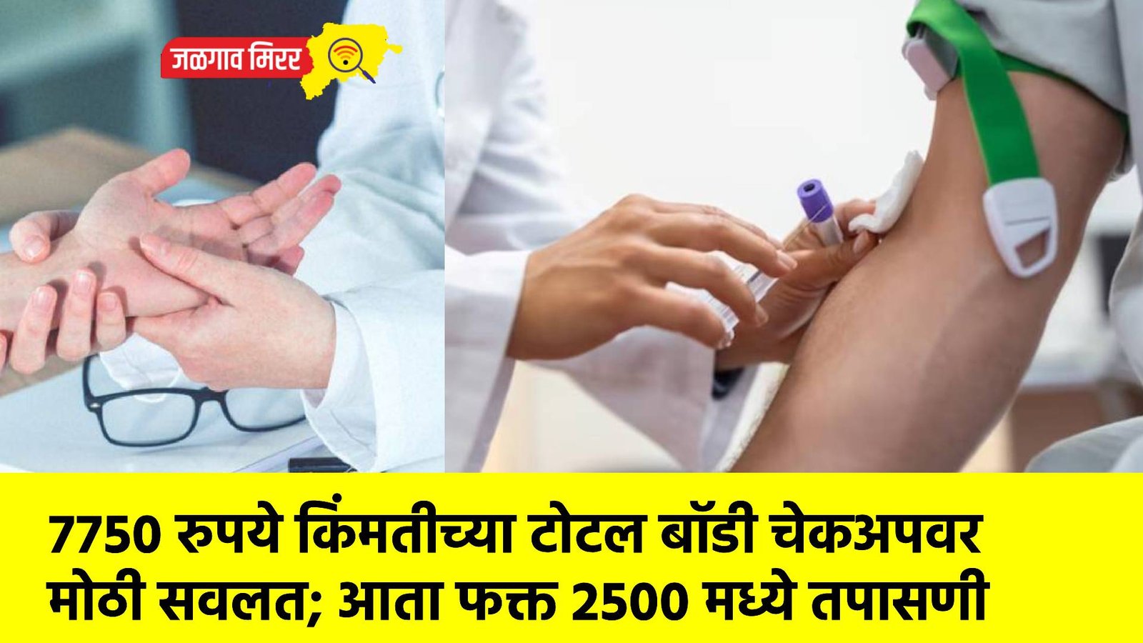 जळगावमध्ये मधुदत्त मॅटर्निटी आणि नर्सिंग होममध्ये आरोग्य तपासणीसाठी मोठी सवलत देण्यात आली आहे. मूळत: ७७५० रुपये खर्चिक टोटल बॉडी चेकअप आता फक्त २५०० रुपयांमध्ये करता येणार आहे. ही ऑफर रुग्णांसाठी अत्यंत फायदेशीर ठरणार असून, संपूर्ण शरीराचे आरोग्य सविस्तर तपासले जाऊ शकते.