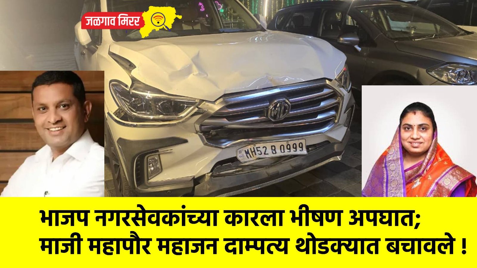 भाजप नगरसेवकांच्या कारला भीषण अपघात; माजी महापौर महाजन दाम्पत्य थोडक्यात बचावले !