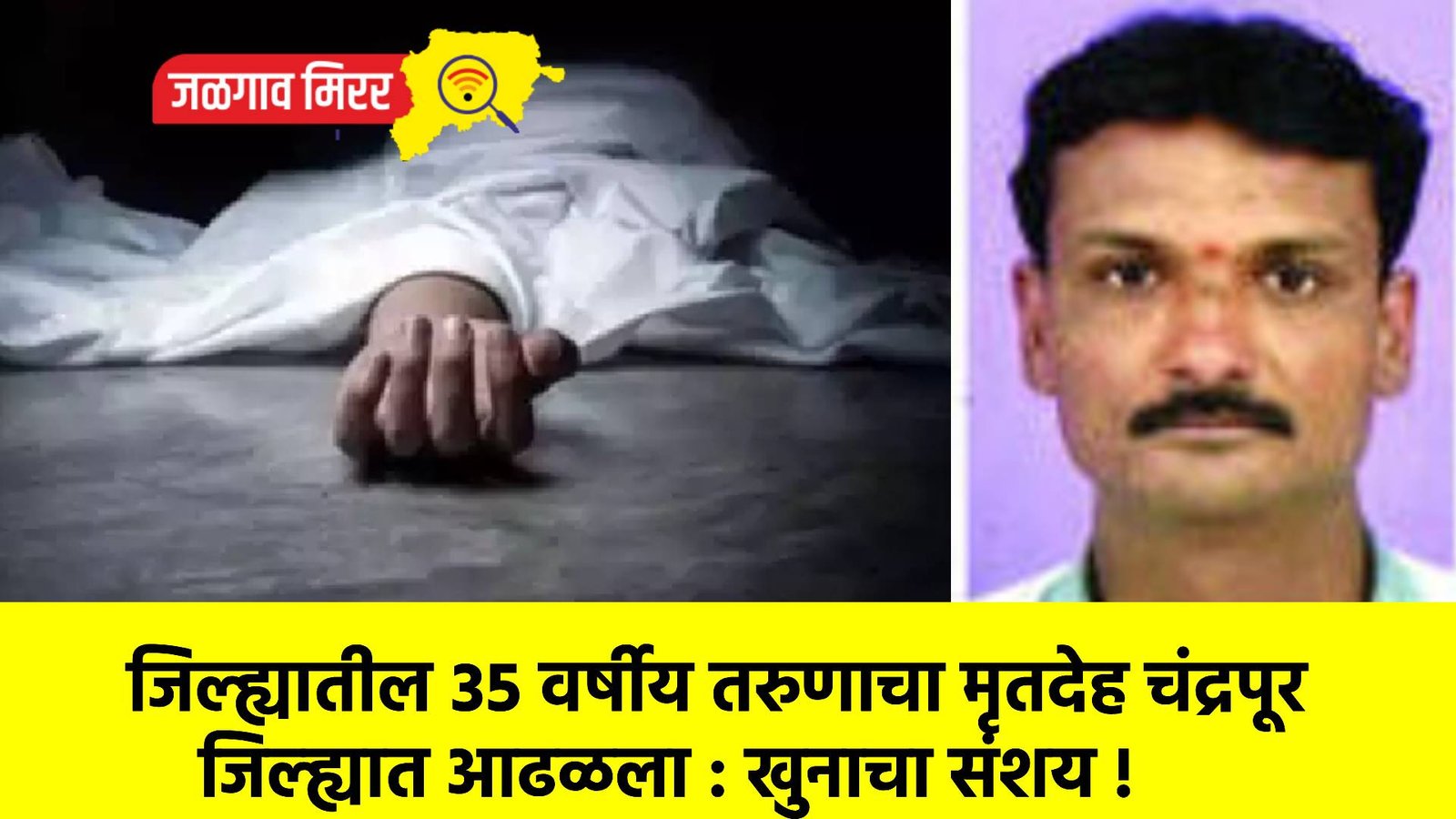 अमळनेर तालुक्यातील मंगरूळ येथील प्रफुल्ल प्रकाश भदाणे (वय ३५) या तरुणाचा मृतदेह संशयितरित्या चंद्रपूर जिल्ह्यात आढळून आला असून या तरुणाचा खून झाल्याचा संशय व्यक्त केला जात आहे. दरम्यान, या तरुणाला तेथील स्थानिक काही जणांनी जबर मारहाण करुन त्याचा खून केल्याचा आरोप मयत तरुणाच्या भावाने केला आहे.