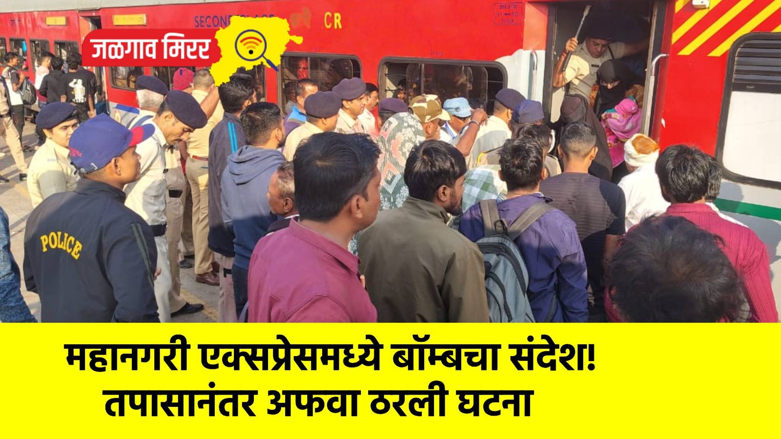 महानगरी एक्सप्रेस या रेल्वेत ‘बॉम्ब’ असल्याचा संशयास्पद संदेश आढळल्याने भुसावळ रेल्वे स्थानकावर बुधवारी रात्री मोठी खळबळ उडाली. “पाकिस्तान जिंदाबाद, आयएसआय जिंदाबाद, गाडीत बॉम्ब आहे” असा संदेश रेल्वेच्या एका डब्याच्या शौचालयात लिहिल्याचे आढळताच भुसावळ रेल्वे स्थानकावर प्रवाशांमध्ये भीतीचे वातावरण निर्माण झाले.