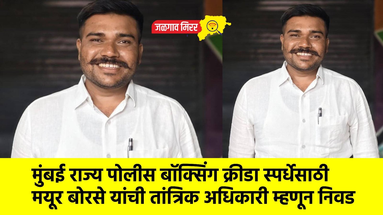 मुंबई शहर येथे दिनांक 20 ते 27 एप्रिल 2026 दरम्यान आयोजित करण्यात येणाऱ्या 36 व्या महाराष्ट्र राज्य पोलीस क्रीडा स्पर्धा 2026 (बॉक्सिंग स्पर्धा) साठी धुळे जिल्ह्यातील अनुभवी पंच मयूर शशिकला लक्ष्मण बोरसे यांची तांत्रिक अधिकारी (STO) – ड्रॉ-कमिशनर म्हणून निवड करण्यात आली आहे.