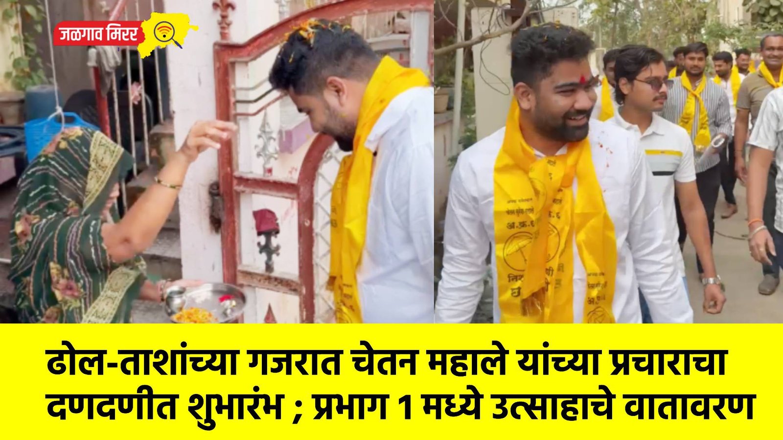 जळगाव शहर महानगरपालिका सार्वत्रिक निवडणूक २०२५-२६ ची रणधुमाळी जोरात सुरू झाली असून प्रभाग क्रमांक १ मधून अपक्ष उमेदवार चेतन सुरेश महाले यांच्या प्रचाराचा शुभारंभ आज मोठ्या उत्साहात पार पडला. शिव शंकर कॉलनीतील हनुमान मंदिरात ज्येष्ठ नागरिकांच्या हस्ते नारळ फोडून ढोल-ताशांच्या गजरात प्रचाराची औपचारिक सुरुवात करण्यात आली.