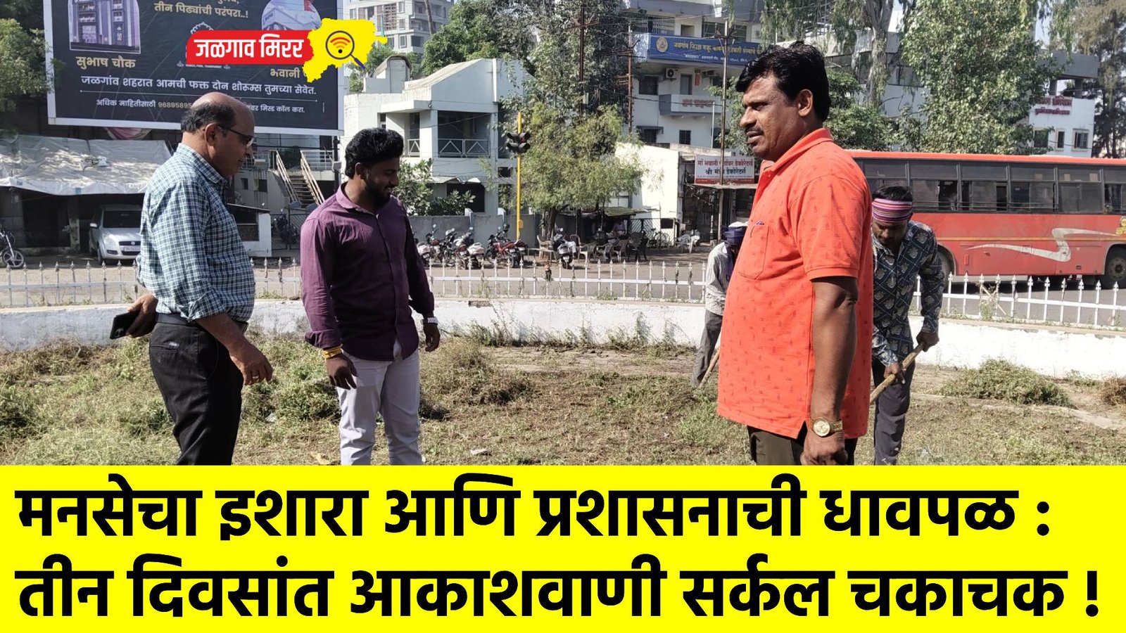 आकाशवाणी सर्कल सफाई अभियान सुरू असताना महाराष्ट्र नवनिर्माण सेनेचे जिल्हाध्यक्ष ॲड जमील देशपांडे, उपमहानगर अध्यक्ष श्रीकृष्ण मेंगडे, राजेंद्र निकम, दीपक राठोड उपस्थित होते.