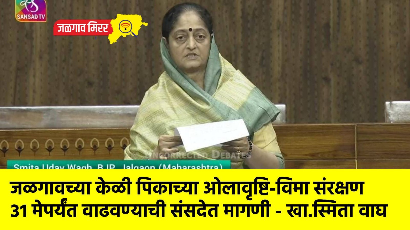 जळगावच्या केळी पिकाच्या ओलावृष्टि-विमा संरक्षण ३१ मेपर्यंत वाढवण्याची संसदेत मागणी – खा.स्मिता वाघ