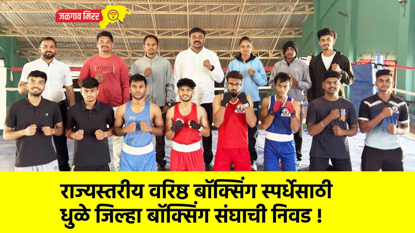 बुलढाणा जिल्ह्यातील शेगाव येथे 9 ते 14 डिसेंबर 2025 दरम्यान आयोजित होणाऱ्या राज्यस्तरीय वरिष्ठ बॉक्सिंग स्पर्धेसाठी धुळे जिल्हा बॉक्सिंग संघटनेतर्फे वरिष्ठ गटातील मुलांचा अंतिम संघ जाहीर करण्यात आला आहे.