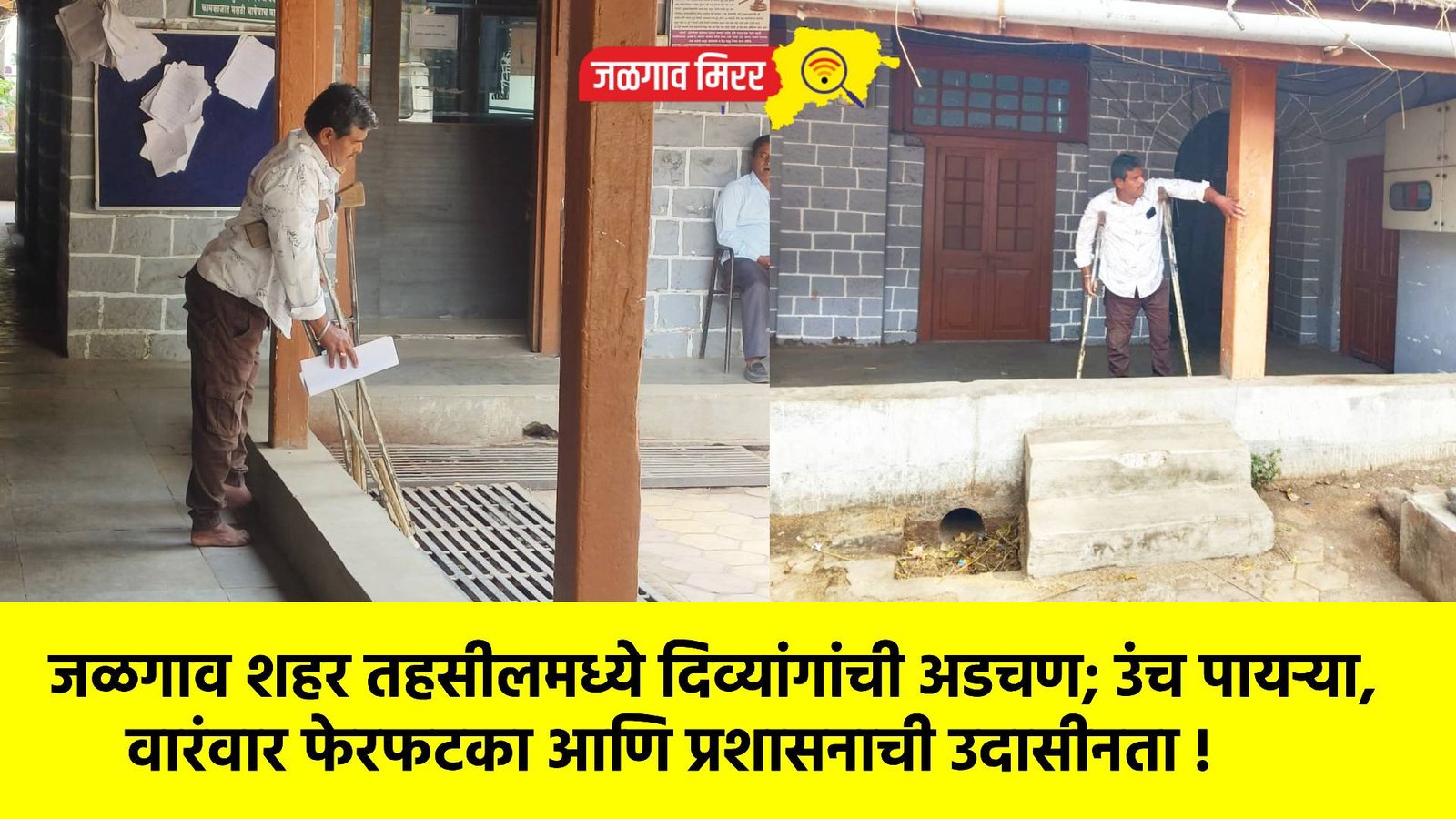 जळगाव शहर तहसीलमध्ये दिव्यांगांची अडचण; उंच पायऱ्या, वारंवार फेरफटका आणि प्रशासनाची उदासीनता !