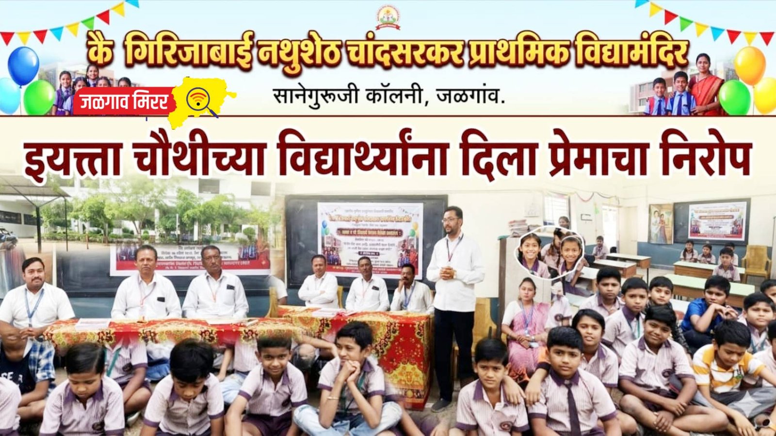 जळगाव येथील खान्देश युनियन एज्युकेशन सोसायटी संचलित कै. गि. न. चांदसरकर पूर्व प्राथमिक व प्राथमिक विद्यामंदिर, साने गुरुजी कॉलनी येथे इयत्ता चौथीच्या विद्यार्थ्यांसाठी “प्रेमाचा निरोप समारंभ” अत्यंत उत्साहपूर्ण व भावनिक वातावरणात पार पडला.