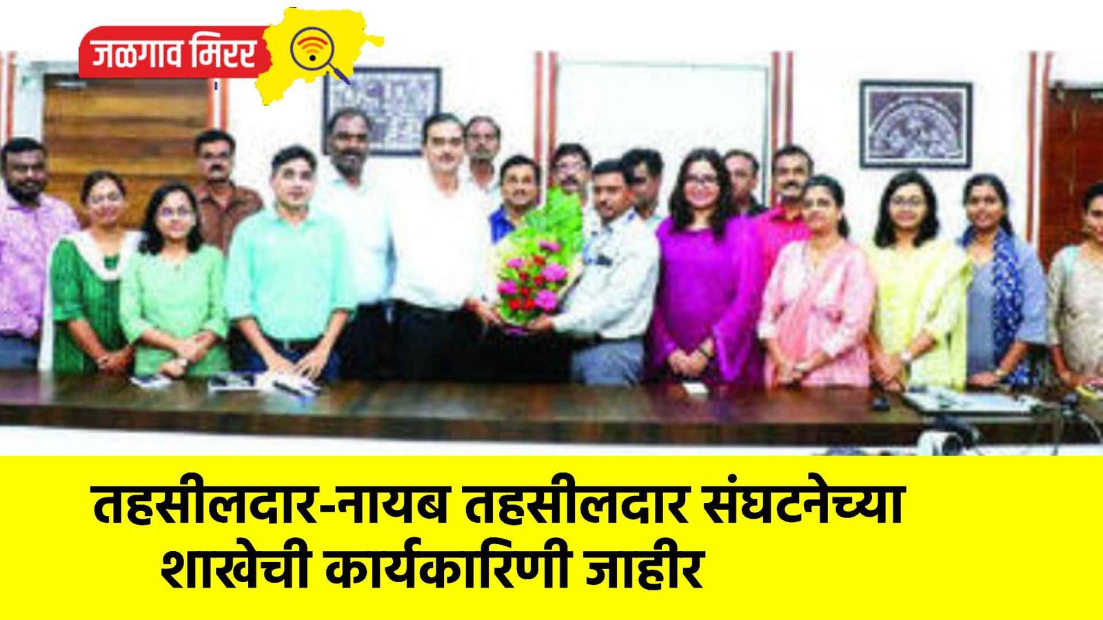 तसेच कार्यकारी अध्यक्ष पदी पाचोरा तहसीलदार पदी पाचोरा तहसीलदार विजय बनसोडे, सचिव पदी जळगाव नायब तहसीलदार राहुल वाघ, उपाध्यक्ष पदी सुनील समदाने व रूपाली काळे, खजिनदार पदी रविंद्र उगले व अंगद असटकर, संघटक सर्व उपविभागीय स्तरावरील तहसीलदार व नायब तहसीलदार यांची निवड करण्यात आली असून कार्यकारिणी जाहीर झाल्यानंतर नवनियुक्त पदाधिकाऱ्यांचा सत्कार करण्यात आला. यावेळी अधिकारी-कर्मचाऱ्यांच्या प्रश्नांवर सकारात्मक तोडगा काढण्याचा निर्धार यावेळी व्यक्त करण्यात आला.