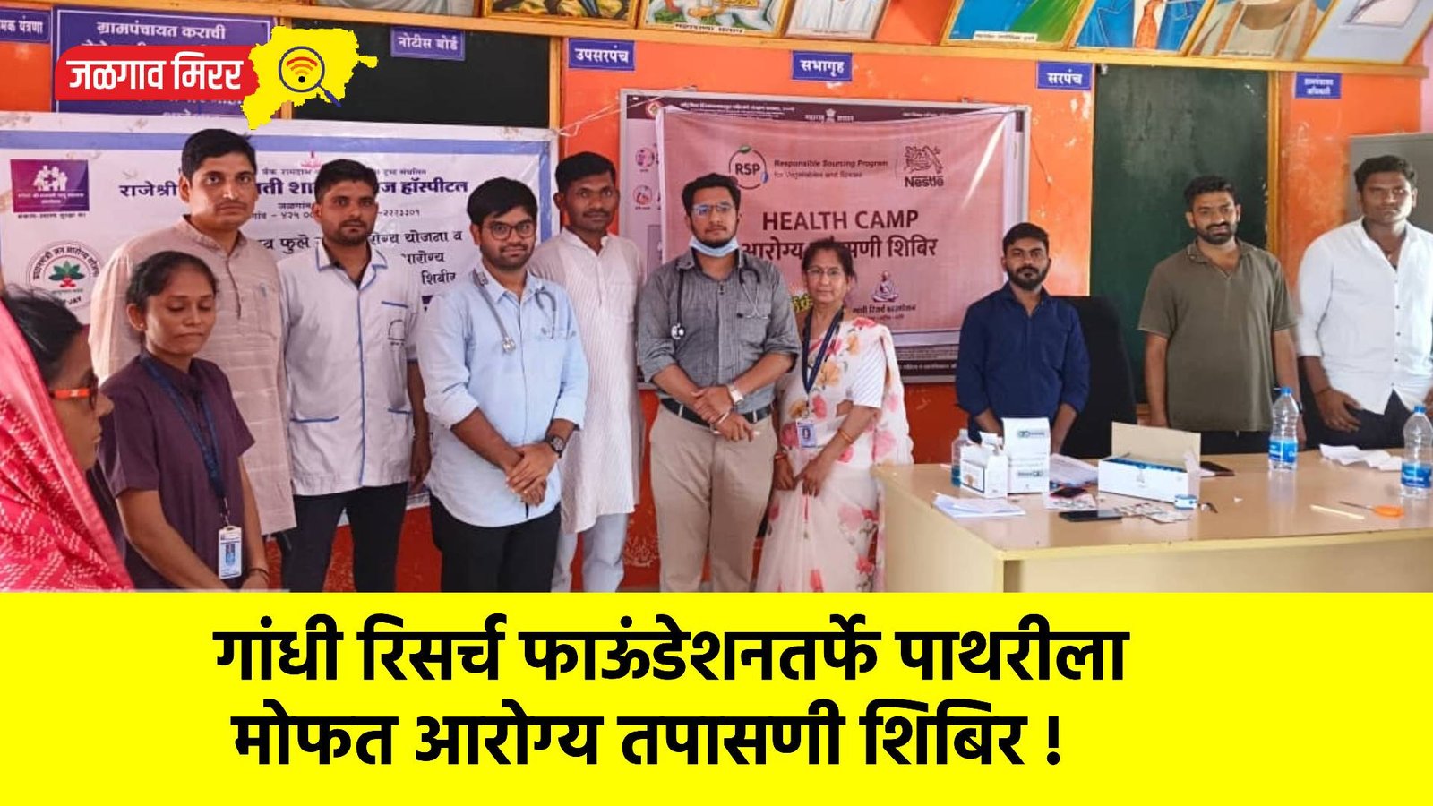 जळगाव तालुक्यातील पाथरी येथे गांधी रिसर्च फाऊंडेशन, जैन फार्मफ्रेश फूड लि., राजेश्री छत्रपती शाहू महाराज हॉस्पिटल यांच्या संयुक्त विद्यमाने मोफत आरोग्य तपासणी शिबिराचे आयोजन आज दि.२९ एप्रिल ला करण्यात आले होते. नेस्ले सामाजिक उपक्रमांतर्गत झालेल्या या शिबीरात १३५ रूग्णांनी लाभ घेतला. याप्रसंगी डॉ. अमीत भास्कर, डॉ. यज्ञेश चौधरी, हर्षा नन्नवरे, तेजस पाटील, सुनिता सिसोदिया, सागर मसाने, म्हसावद प्राथमिक आरोग्य केंद्राचे प्रशांत चौधरी उपस्थितीत होते.