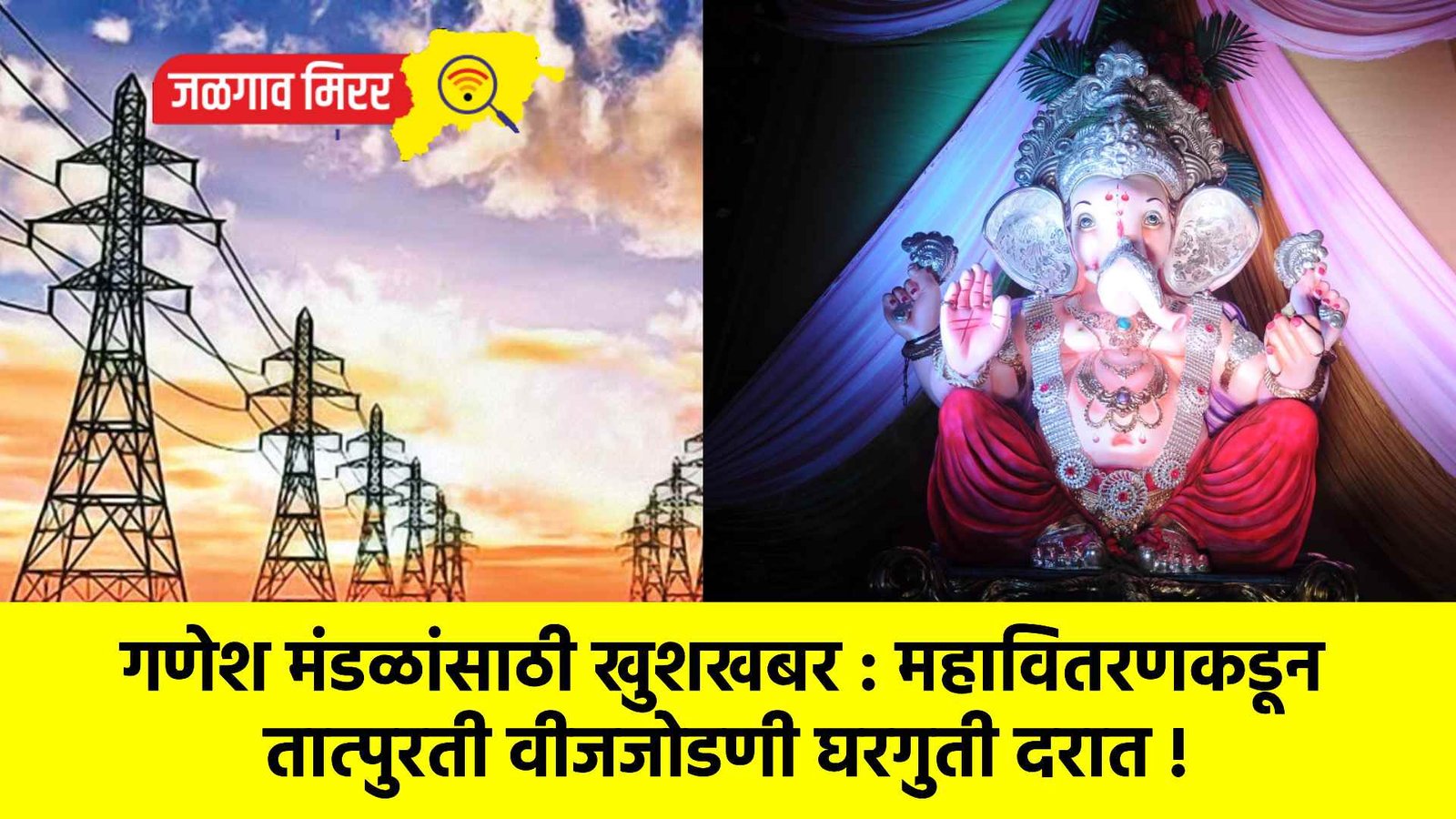 सार्वजनिक गणेश मंडळांना महावितरणकडून तात्पुरत्या स्वरूपात आणि त्वरित वीजजोडणीची सुविधा उपलब्ध केली आहे. या जोडणीसाठी घरगुती वीजदर आकारण्यात येणार आहे. तरी सार्वजनिक गणेश मंडळांनी या सुविधेचा लाभ घ्यावा, असे आवाहन जळगाव परिमंडलाचे मुख्य अभियंता आय.ए. मुलाणी यांनी केले आहे.