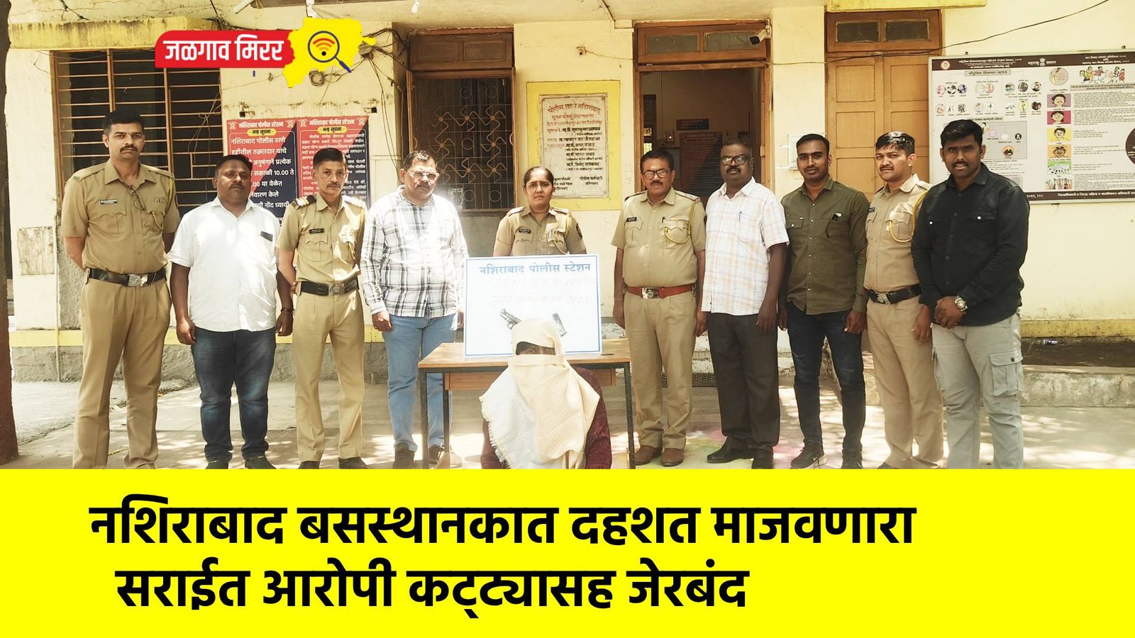 जळगाव जिल्ह्यातील नशिराबाद येथे बसस्थानक परिसरात गावठी कट्टा घेऊन दहशत माजवत फिरणाऱ्या एका सराईत आरोपीला पोलिसांनी धडक कारवाई करत अटक केली. या कारवाईत आरोपीकडून बेकायदेशीर शस्त्र जप्त करण्यात आले असून त्याच्याविरुद्ध शस्त्र अधिनियमांतर्गत गुन्हा दाखल करण्यात आला आहे.