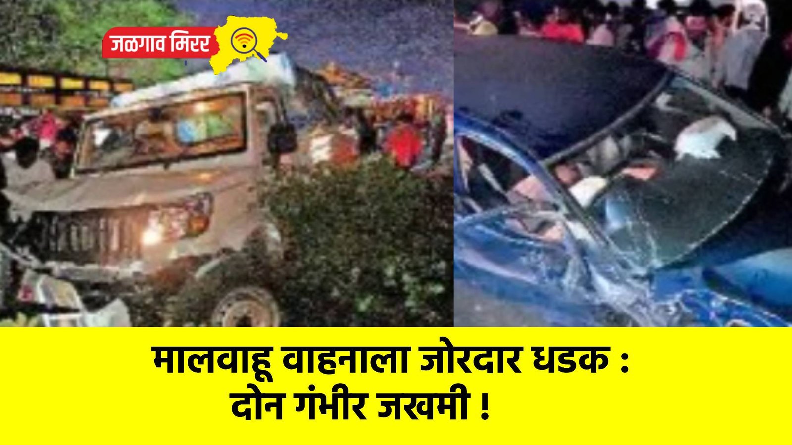 नशिराबाद रस्त्यावरील चिरमाडे पेट्रोल पंपासमोर सोमवारी सायंकाळी सुमारे ७ वाजेच्या सुमारास भरधाव कारने मालवाहू वाहनाला जोरदार धडक दिल्याने भीषण अपघात घडला. या अपघातात कारमधील दोघे गंभीर जखमी झाले असून, त्यांना तातडीने जळगाव शासकीय वैद्यकीय महाविद्यालय व रुग्णालयात (जीएमसी) दाखल करण्यात आले आहे.
