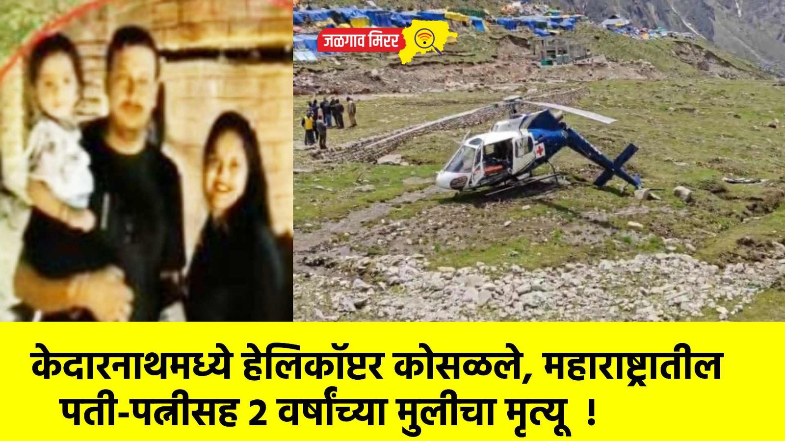 देशातील उत्तराखंडमधील केदारनाथ येथे रविवारी पहाटे हेलिकॉप्टर कोसळून झालेल्या दुर्घटनेमध्ये सात जणांचा मृत्यू झाला. मृतांमध्ये महाराष्ट्रातील तिघांचा समावेश आहे. यवतमाळ जिल्ह्यातील वणी येथील जैस्वाल कुटुंबाने या दुर्घटनेमध्ये जीव गमावला आहे. राजकुमार जैश्वाल, त्यांची पत्नी श्रद्धा जैस्वाल आणि दोन वर्षांची मुलगी काशी जैस्वाल अशी मृतांची नावे आहेत.