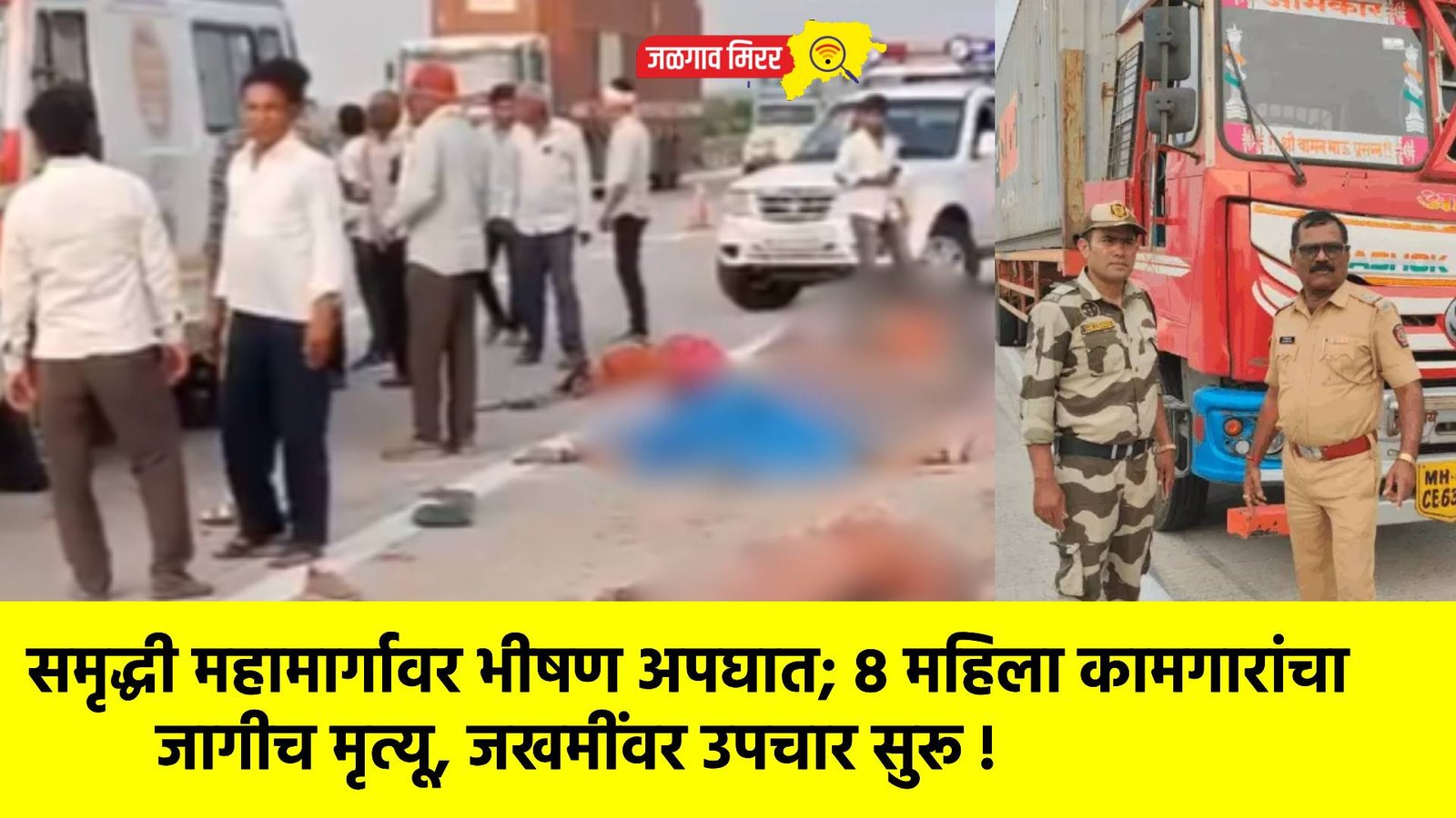 समृद्धी महामार्गावर भीषण अपघात; ८ महिला कामगारांचा जागीच मृत्यू, जखमींवर उपचार सुरू !