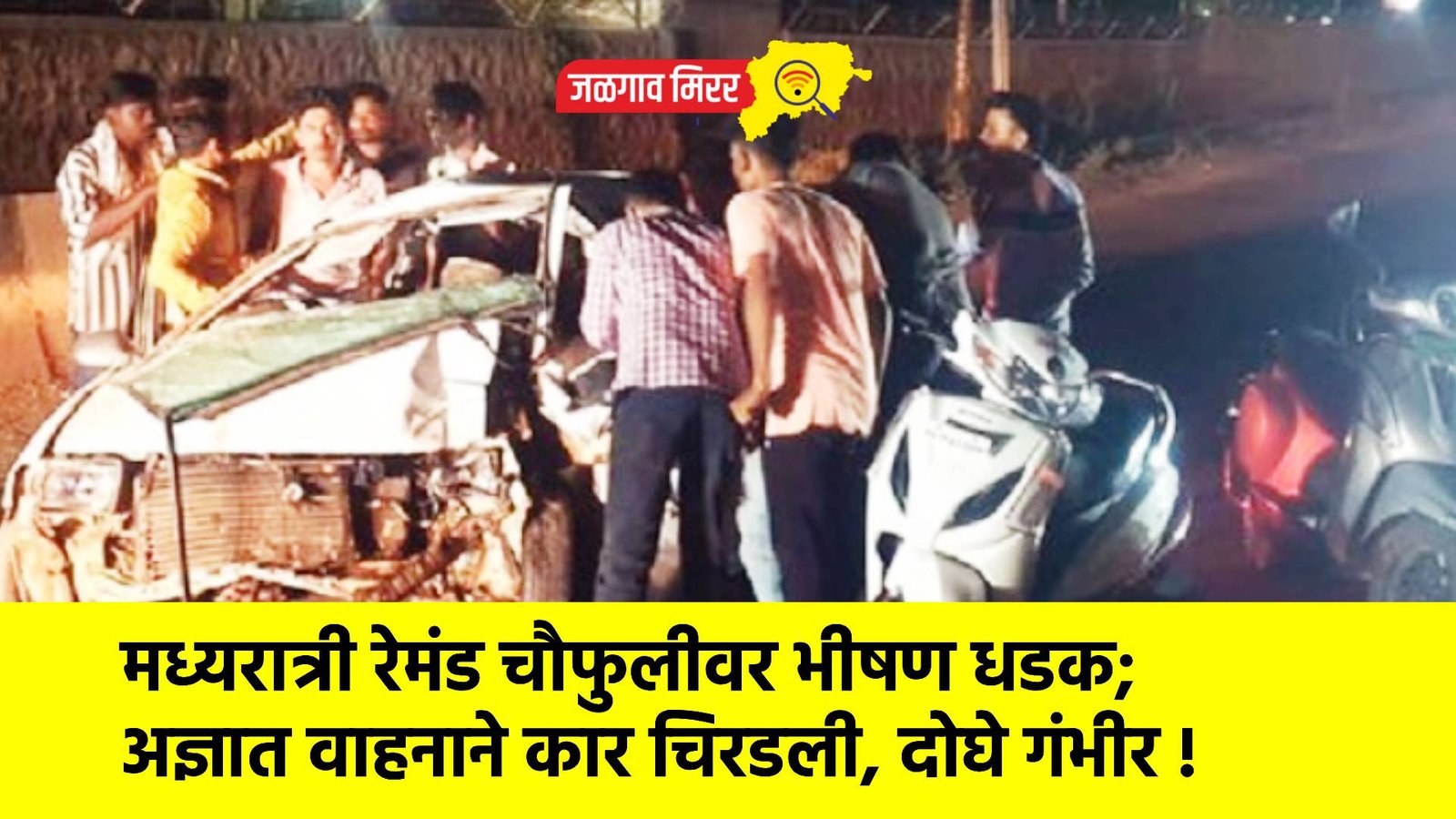 जळगावकडून कुसुंब्याकडे जाणाऱ्या मार्गावर रेमंड चौफुलीजवळ मंगळवारी मध्यरात्री भीषण अपघात घडला. अज्ञात वाहनाने कारला जोरदार धडक दिल्याने कारचालकासह एका महिलेचा गंभीर जखमी झाला आहे. ही घटना रात्री सुमारे १२:४५ वाजेच्या सुमारास घडली.