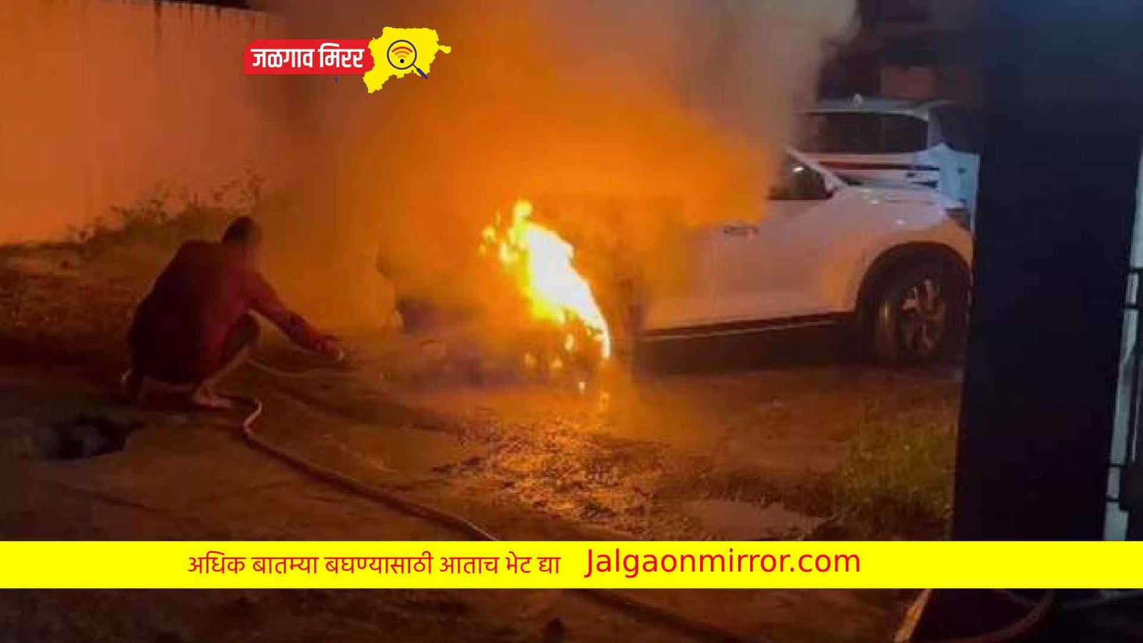 जळगाव शहरातील गणपती नगरात आज दि २८ रोजी पहाटेच्या सुमारास अज्ञात माथेफिरूने कार आणि दुचाकी जाळल्याची खळबळजनक घटना घडलीये. गेल्या महिन्याभरात वाहने जाळण्याच्या दोन ते तीन घटना घडल्याने नागरिकांमध्ये भीतीचं वातावरण निर्माण झालंय. पोलीस प्रशासनाने अशा माथेफिरूंचा शोध घेऊन कडक कारवाई करावी, अशी मागणी केली जात आहे.