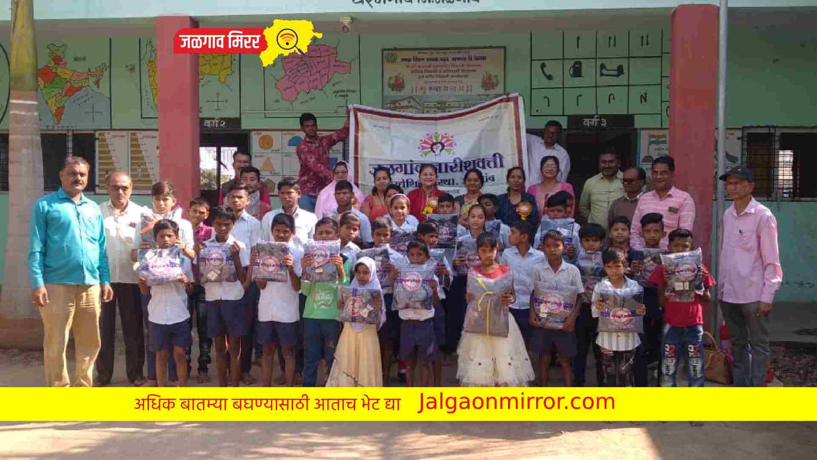 याप्रसंगी नारीशक्ती बहुद्देशीय संस्था जळगाव अध्यक्ष सौ.मनिषा पाटील व सचिव श्रीमती ज्योती राणे यांनी संस्थेमार्फत राबविण्यात येणारे विविध उपक्रमांविषयी माहिती दिली.संस्थेच्या पदाधिकारी माधुरी शिंपी, किमया पाटील,भारती कापडणे,मरियम बुगडवाला आदींनी विद्यार्थ्यांशी मायेनं हितगुज केलं.