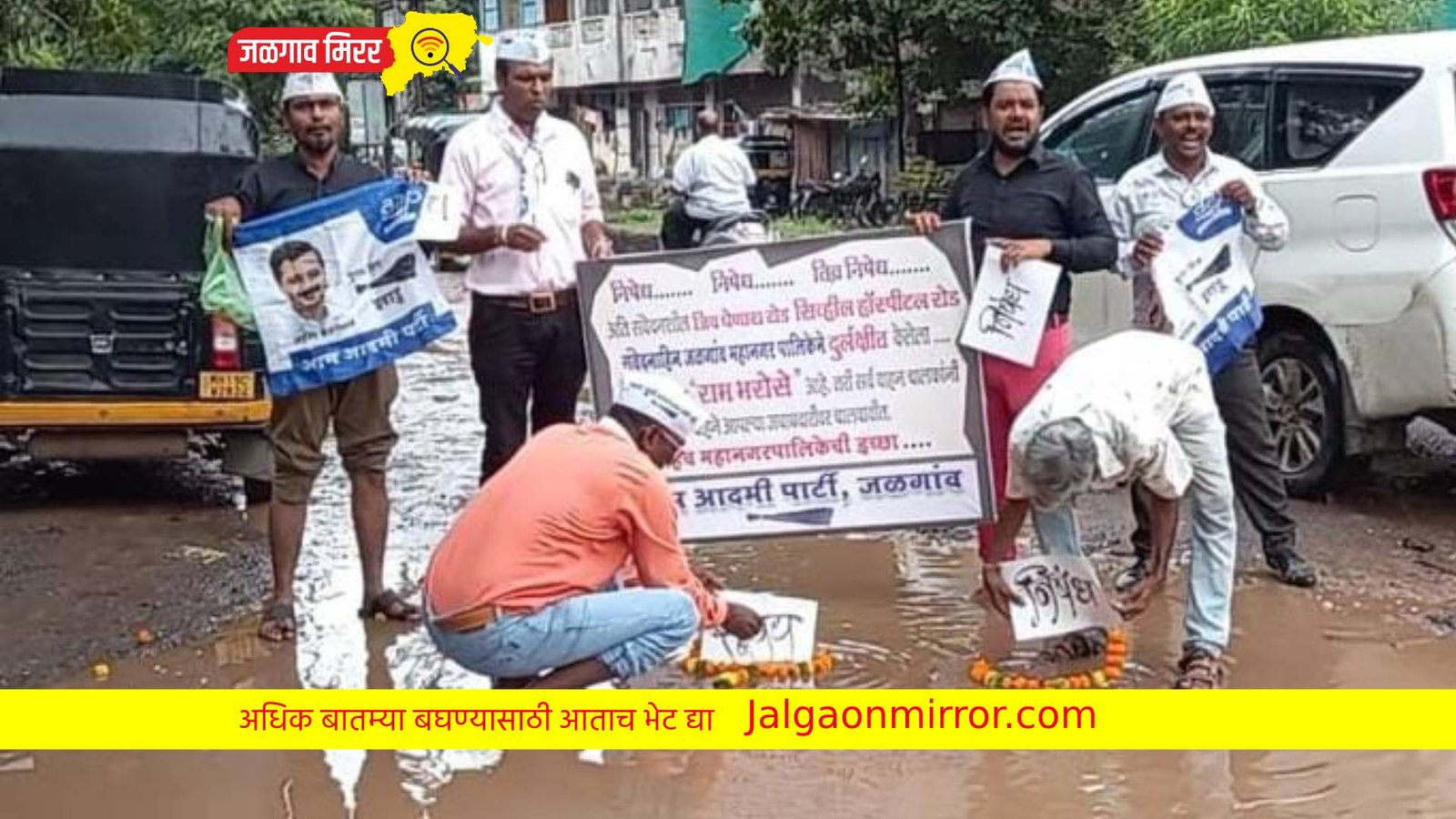 आम आदमी पार्टीतर्फे रस्त्याचा जाहीर निषेध करत तर या रस्त्यांना ‘रामभरोसे’ नाव देऊन एक अभिनव आंदोलन केल्याने जनतेतून या आंदोलनाचे कौतुक केले जात आहे. यावेळेस रस्त्यावरील खड्ड्यांना पुष्पहार घालून नारळ फोडून निषेध करण्यात आला. तसेच जळगाव शहराचे आमदार राजूमामा भोळे यांची गाडी अडवण्यात आली व जळगाव शहरातील समस्यांसंदर्भात बोलण्यात आले या प्रसंगी जळगाव शहर आम आदमी पार्टीचे कार्याध्यक्ष योगेश हिवरकर, अल्पसंख्यांक अध्यक्ष रईस कुरेशी व जळगाव शहर आम आदमी पार्टी मीडिया प्रमुख व प्रवक्ता योगेश भोई उपस्थित होते. याप्रसंगी कार्यकर्ता माधवराव जाधव.शकील शेख. आरिफ खान. रत्नाकर खरोटे. दुर्गेश निंबाळकर. आदी कार्यकर्तेनी परिश्रम घेतले.
