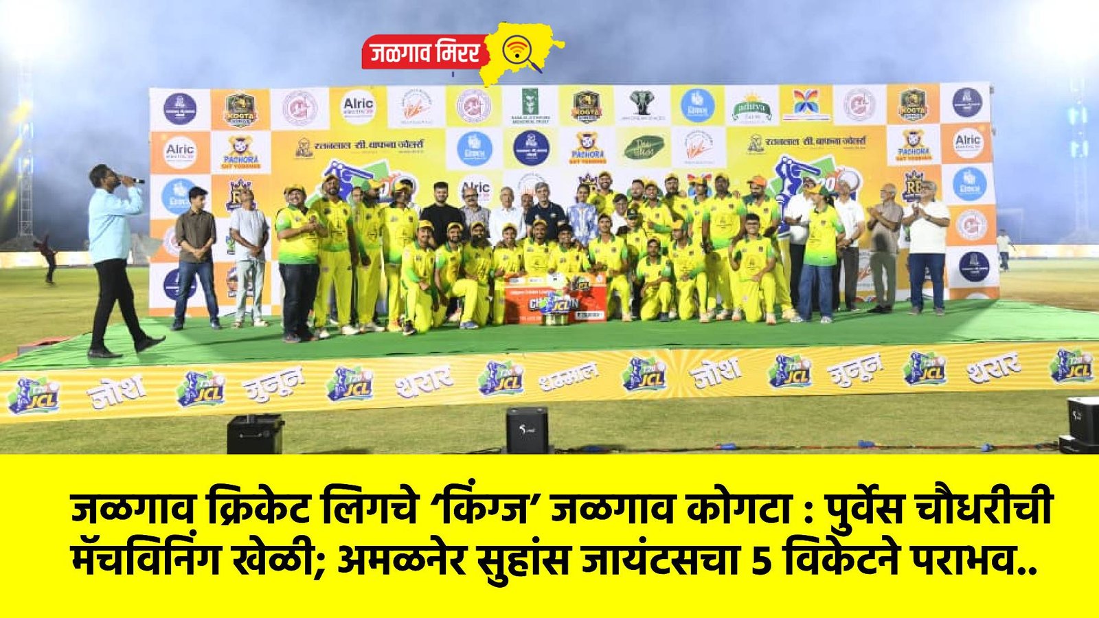 रोमांचक आणि थरारक सामन्यांनी जैन ड्रीम स्पेसेस वर रंगलेल्या जळगाव क्रिकेट लिगचा अंतिम सामना अमळनेर सुहांस जायंट्स व जळगाव कोगटा किंग्ज मध्ये झाला. पुर्वेस चौधरीच्या मॅचविनिंग खेळीने जळगाव कोगटा किंग्ज यंदाच्या जेसीएलच्या चषकावर आपले नाव कोरले.