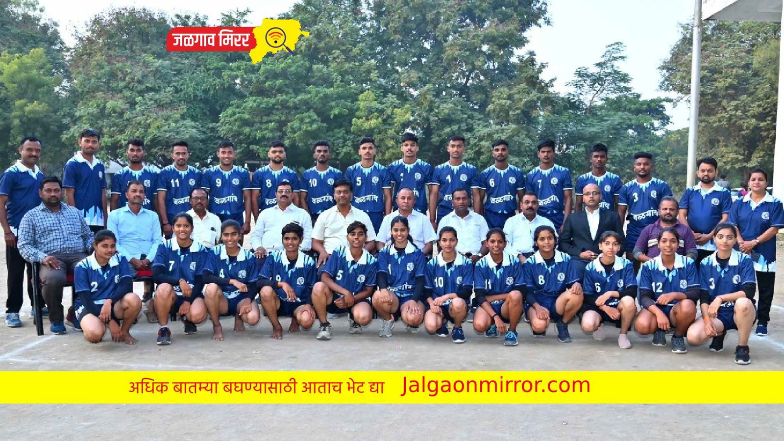 कुमार गट – ओम महांगडे (कर्णधार), यश भोळे, जयेश महाजन, कुणाल सोनवणे, गौतम गवळी, मिलींद सोनवणे, धिरज चौधरी, रुपेश शिंगोटे, रामेश्वर राठोड, वैभव महाजन, भरत पाटील, चेतनकुमार जमादार, प्रशिक्षक – अनिल कोळी, संघ व्यवस्थापक- विनय चौधरी
