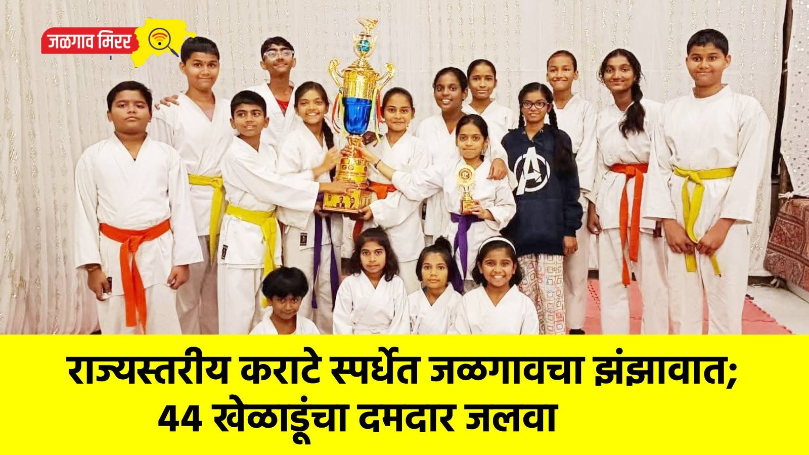 यास्पर्धेमध्ये संजीवनी स्पोर्ट्स असोसिएशन जळगाव व सिटी स्पोर्ट्स अँड कराटे असोसिएशन जळगांव संघटनेचे अजय काशीद सर, दिगंबर महाजन सर, ज्ञानेश्वर पवार.करिष्मा अहिरे मॅडम यांच्या मार्गदर्शनाखाली लिला पार्क महादेव मंदिर जवळ आयोध्या नगर, आर.आर. शाळा, हरी ओम नगर जुना कानळदा रोड जळगांव या ठिकाणी चालणाऱ्या क्लासेस मधील 44 कराटे खेळाडूं सहभागी झालेले होते या स्पर्धेत विद्यार्थी यांनी जास्तीत जास्त गोल्ड मेडल मिळवून दुसऱ्या क्रमांकाचा खानदेश चषक सिटी स्पोर्ट्स अँड कराटे असोसिएशन जळगांव यांनी पटकावला आलेल्या सर्व खेळाडूंना मेडल देवुन गौरविण्यात आले यशस्वी सर्व खेळाडूंना सिटी स्पोर्ट्स अँड कराटे असोसिएशन चे कराटे प्रशिक्षक , जोगिंदर मौर्य , अजय काशिद,दिगंबर महाजन . ज्ञानेश्वर पवार. करिष्मा आहिरे अनमोल सहकार्य योगेश भाऊ साळी यांचे मार्गदर्शन लाभले