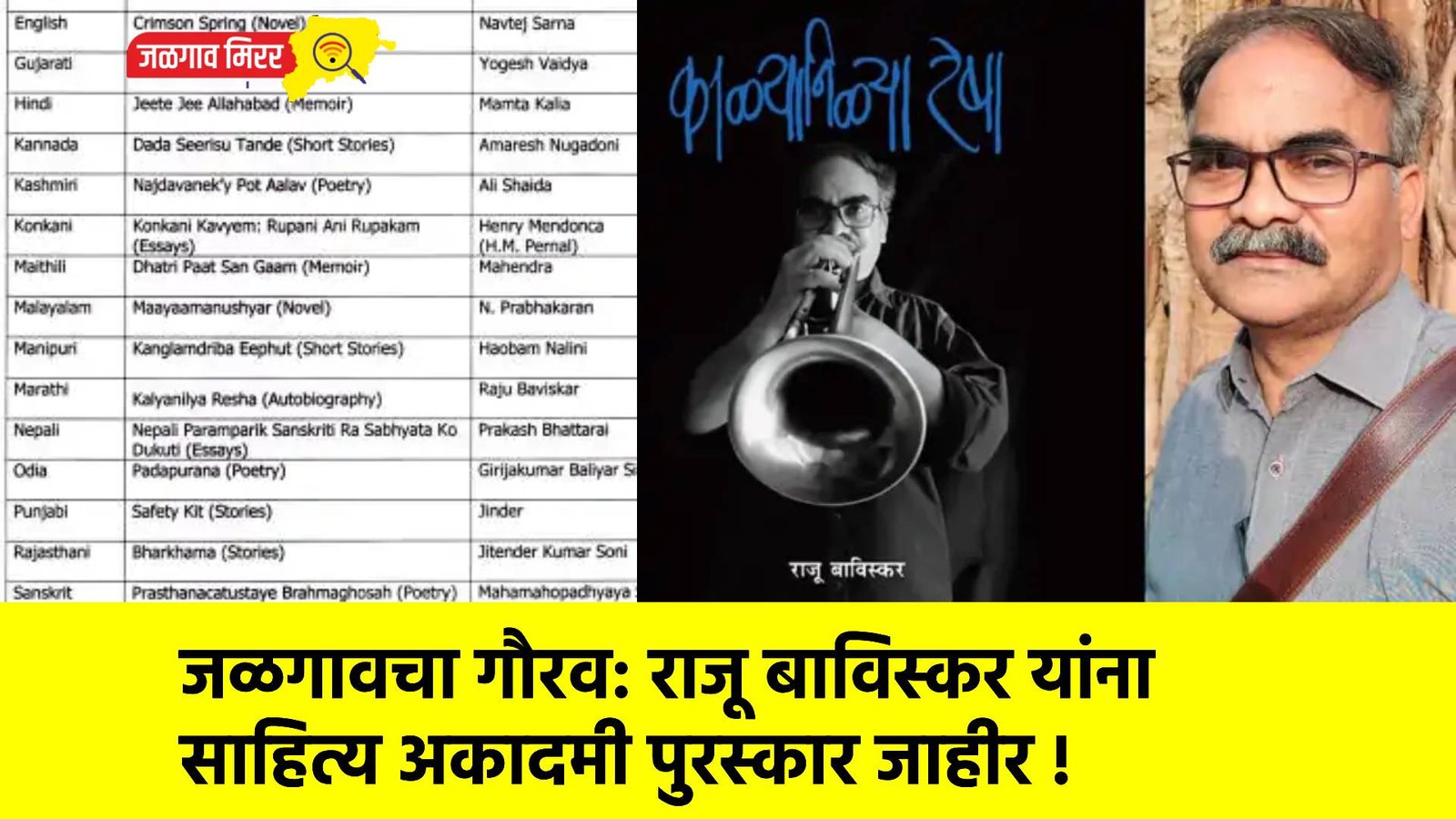 जळगावचा गौरव : राजू बाविस्कर यांना साहित्य अकादमी पुरस्कार जाहीर !